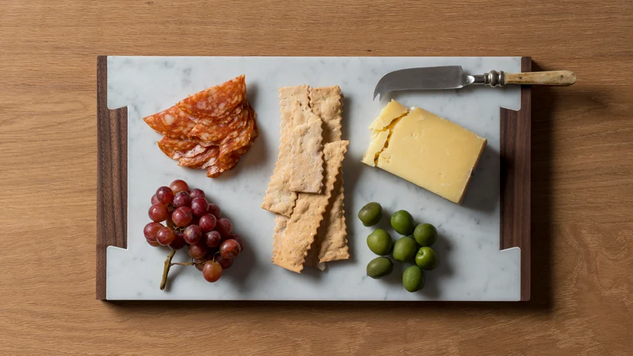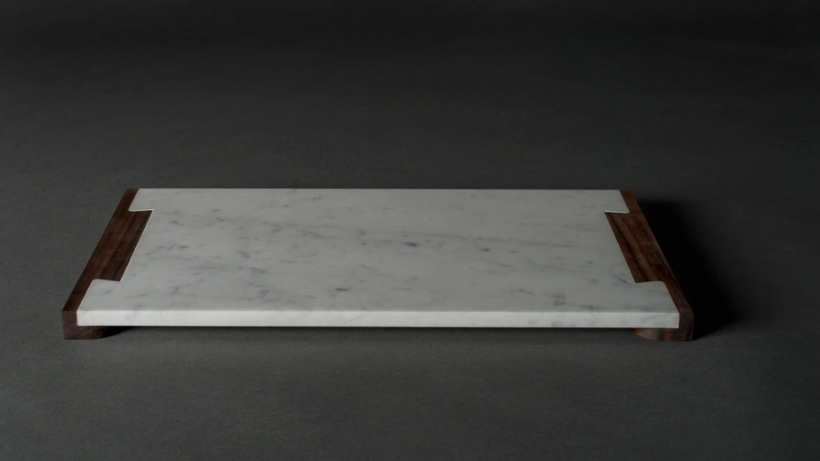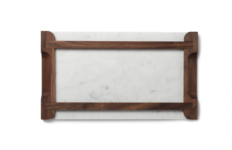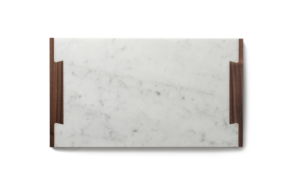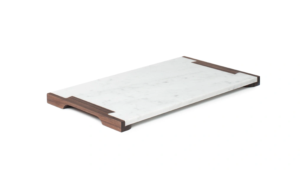 Palate is the perfect backdrop for serving a delicious spread. Crafted from waterjet cut Carrara marble and CNC carved American walnut, Palate elegantly fuses function with luxury. The walnut handles make for comfortable lifting and the sealed Carrara marble is easy to wipe clean. Ideal for cheese plates, antipasti, sushi or art for your kitchen, Palate is made in the USA and built with care and precision.