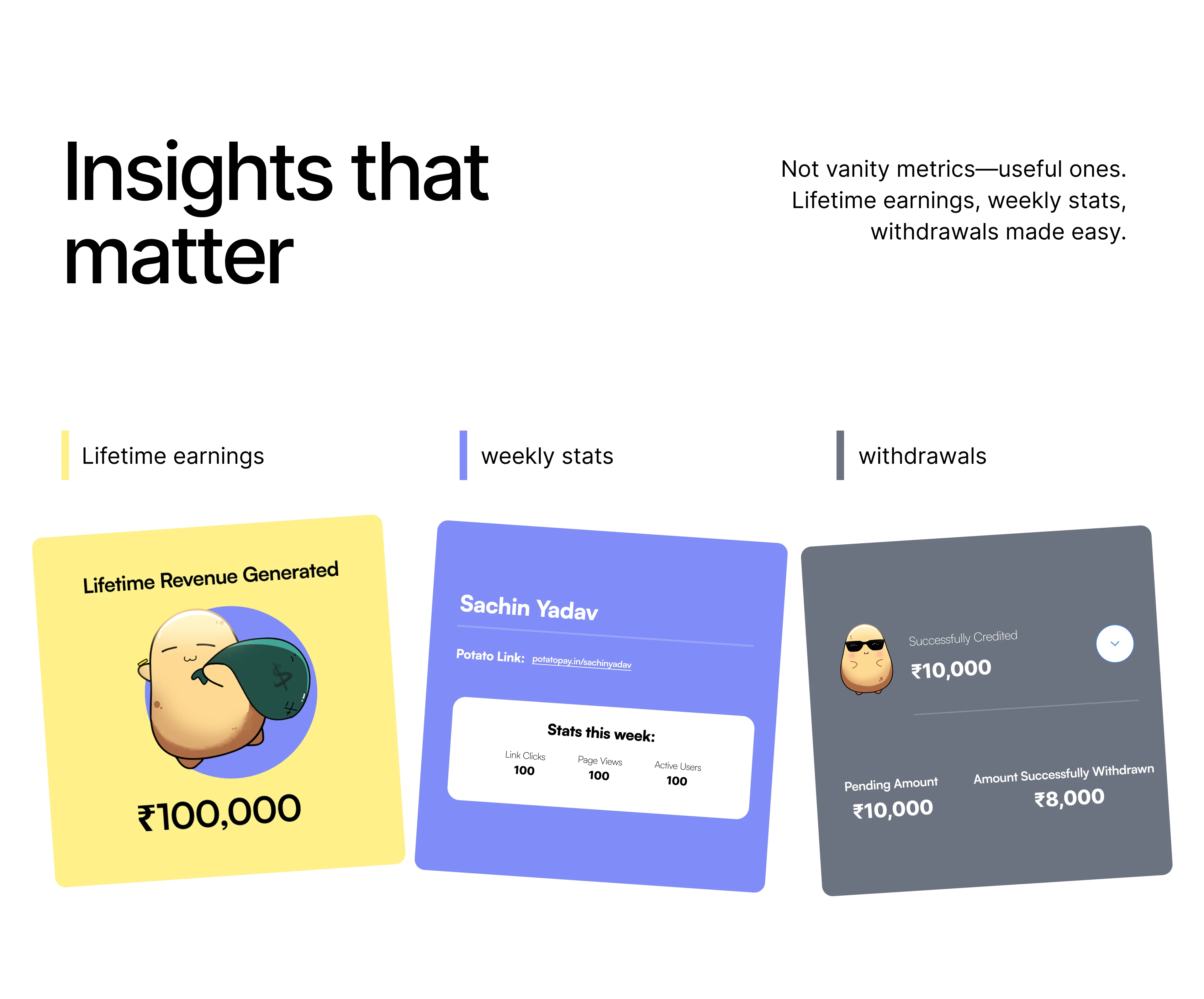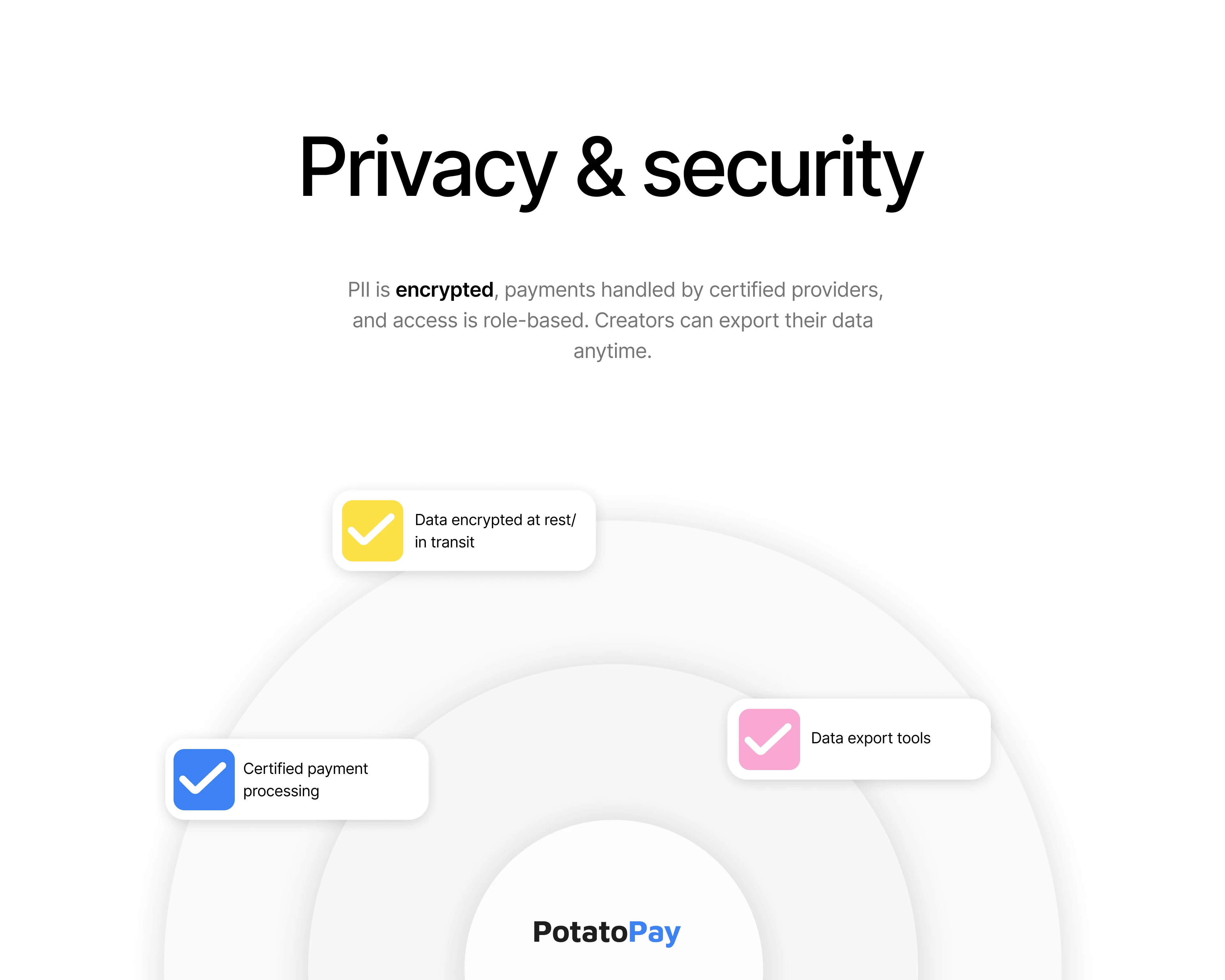 We designed and built the PotatoPay app: clear wallet, one-screen tipping, transparent receipts, and safety controls complex under the hood, simple to use.