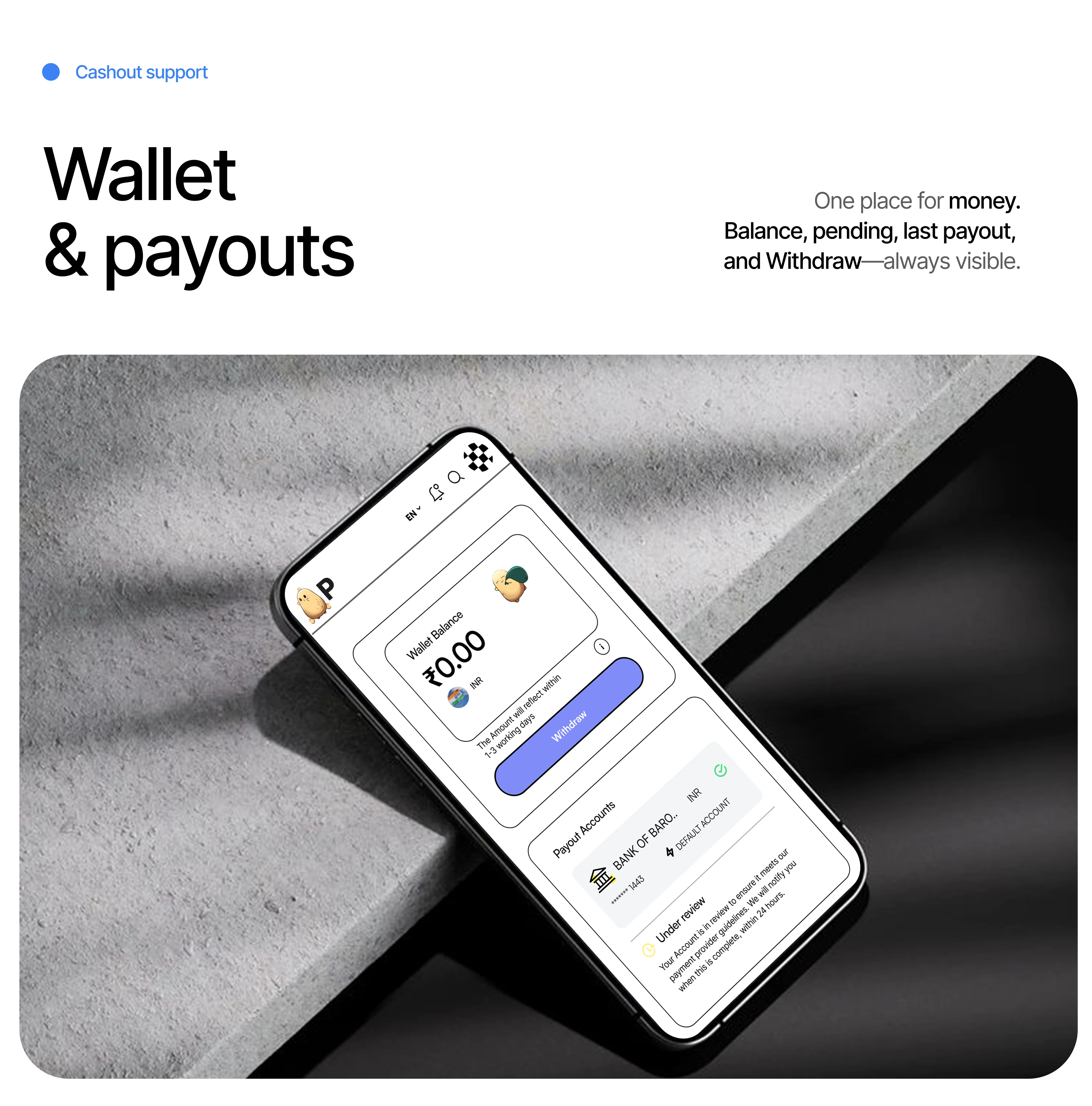 Creators can earn and withdraw with confidence. Fans tip in one screen. Support gets fewer payment questions because receipts and timelines are clear. And the product has a single design language across web + app, faster to ship, easier to evolve.