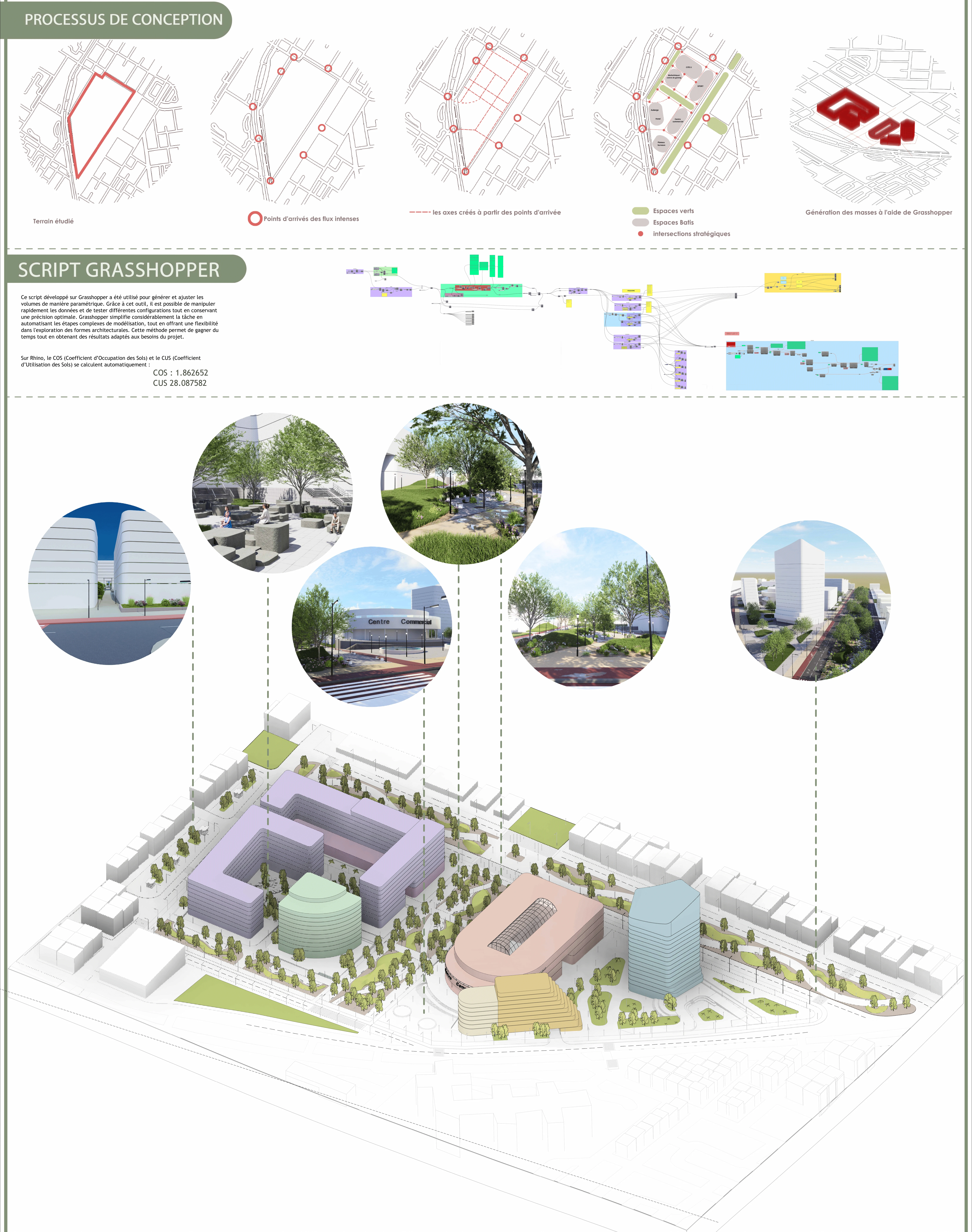 The design began with a thorough spatial and morphological analysis, identifying key axes, desire lines, and urban voids. From this, a parametric framework was developed using Grasshopper to generate block configurations based on access, visibility, solar orientation, and programmatic needs.