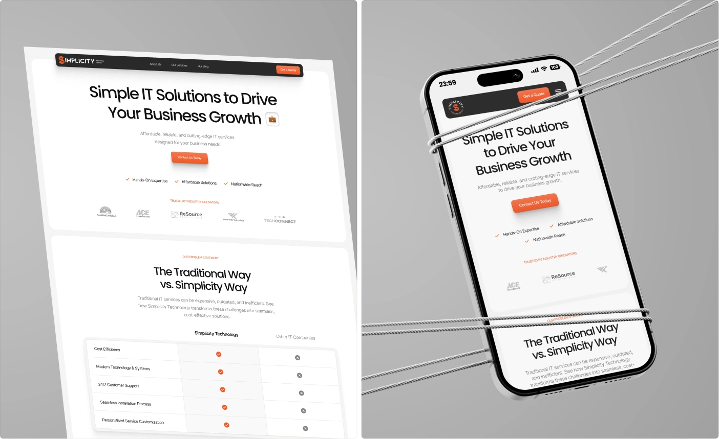 We crafted a sleek, modern brand identity and revamped the website, working with Simplicity Technology to transform their brand and online presence.
