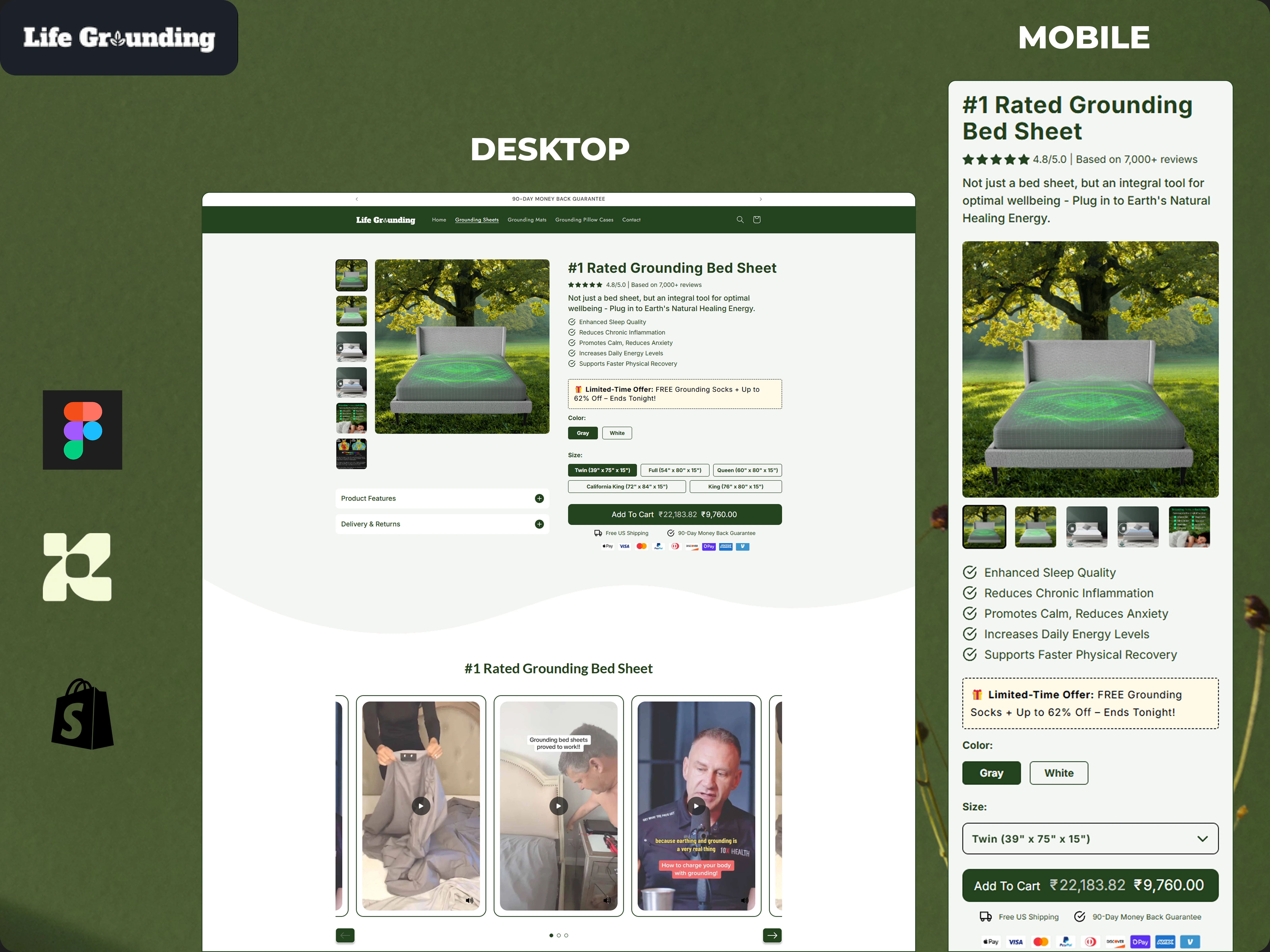 I redesigned Life Grounding's product page, aligning it with their brand and adding UGC and reviews to boost trust, engagement, and drive conversions.