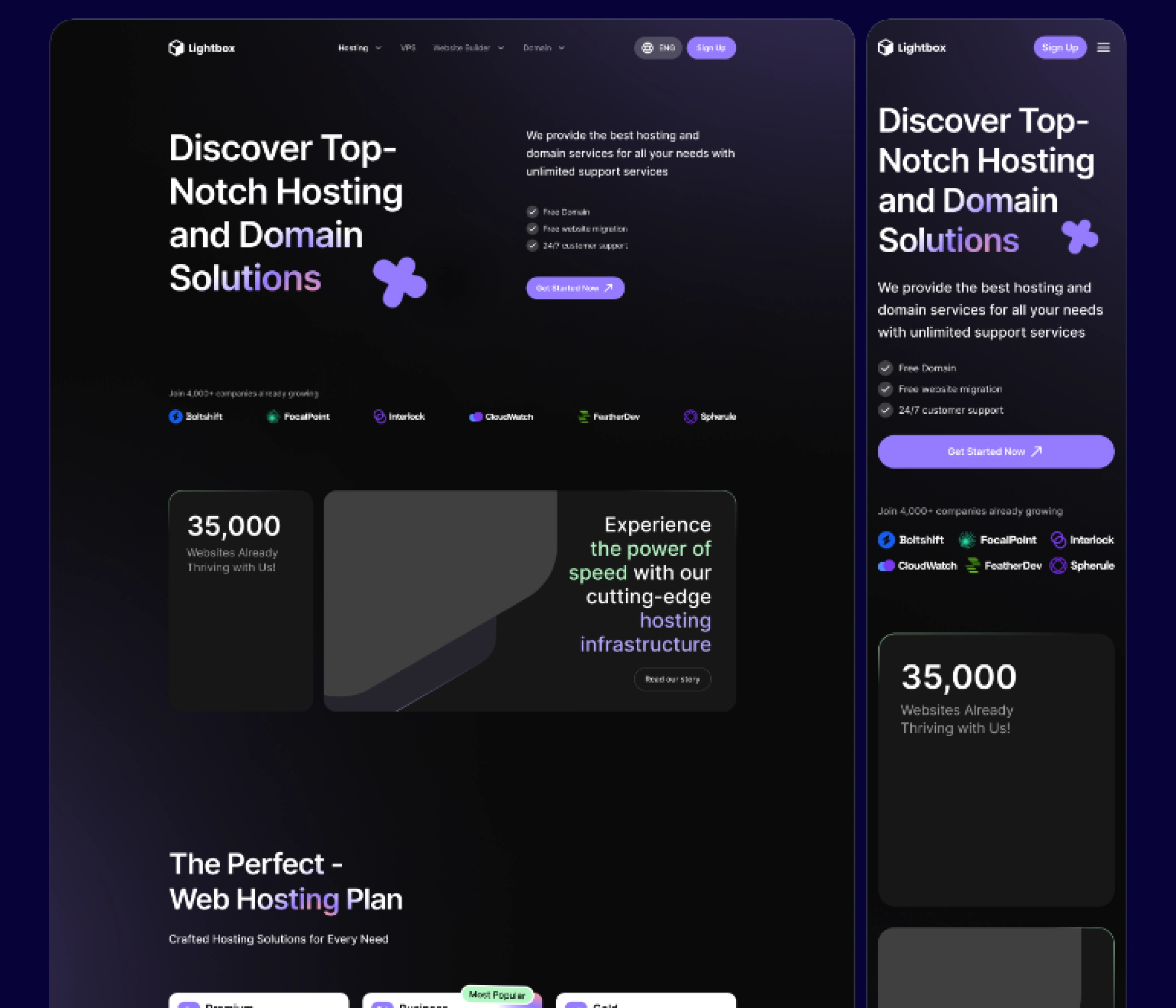 This project comes from Lightbox Hosting Provider. The primary goal of the project was to create a compelling and user-friendly promotional webpage for Lightbox