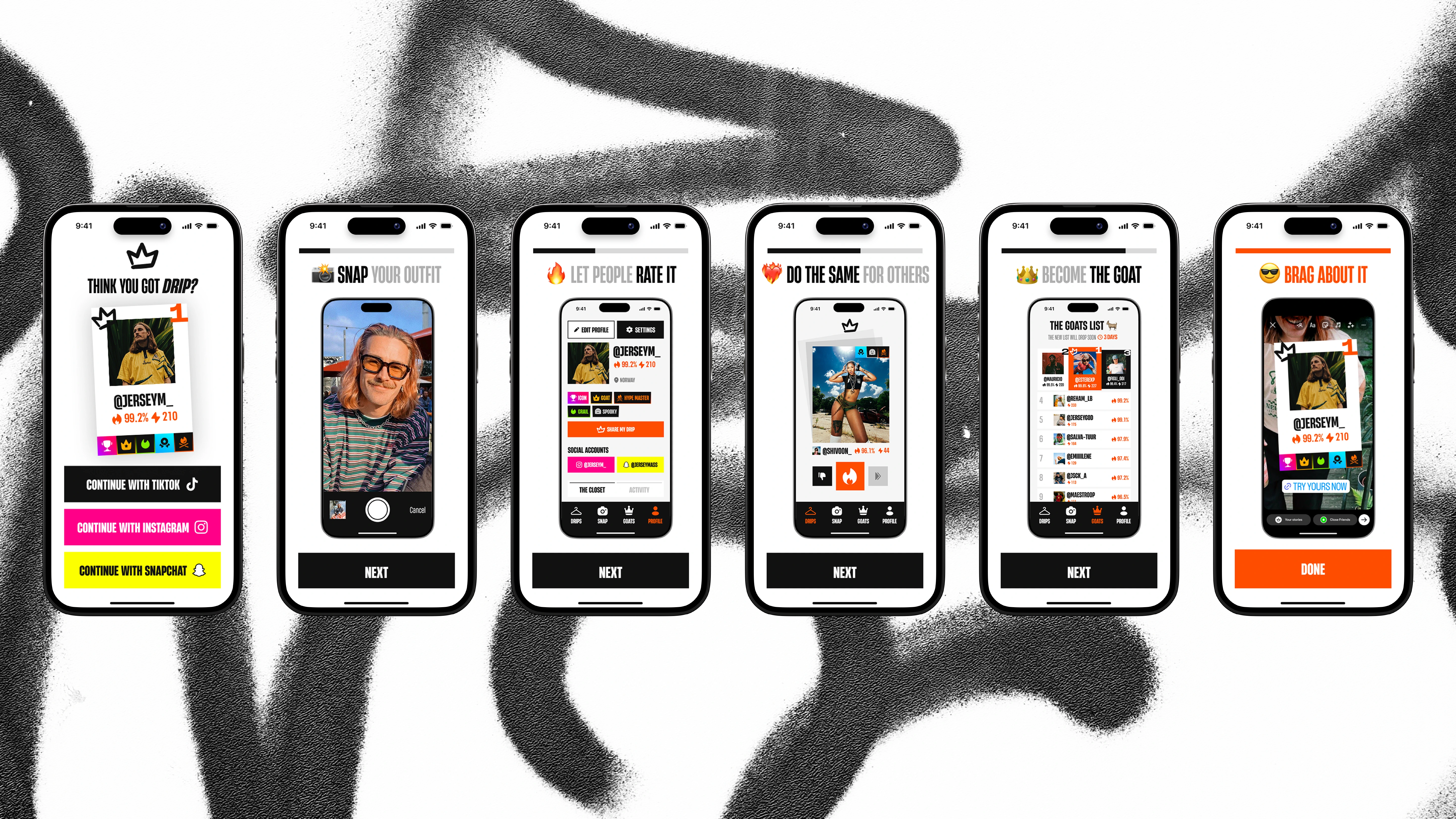 DRIP is a conceptual social gaming app that transforms style into a competitive sport for Gen Z. It gamifies fashion by allowing users to rate outfits, climb leaderboards, and earn status through consistent style. Moving beyond the ambiguity of "likes," DRIP provides a direct, fast-paced, and addictive platform for style validation.