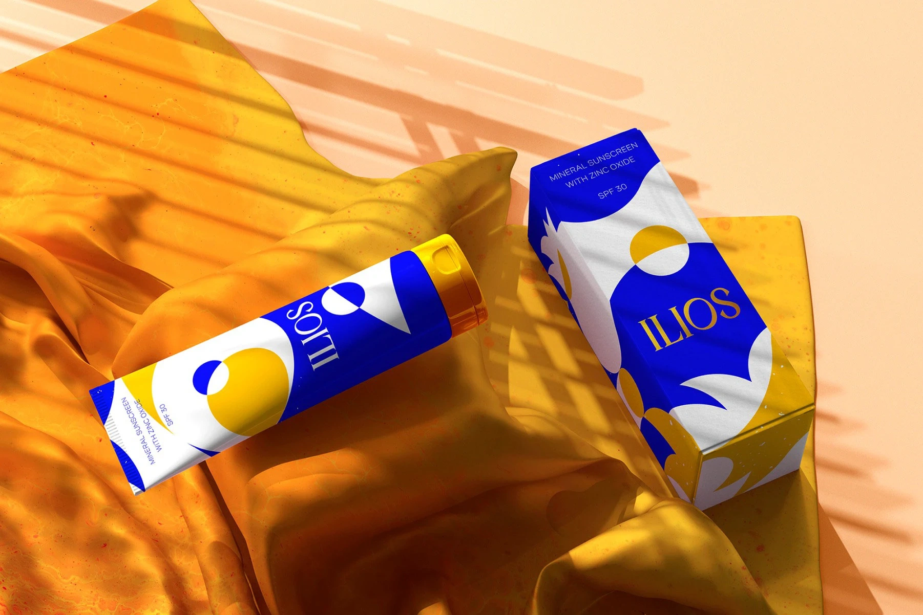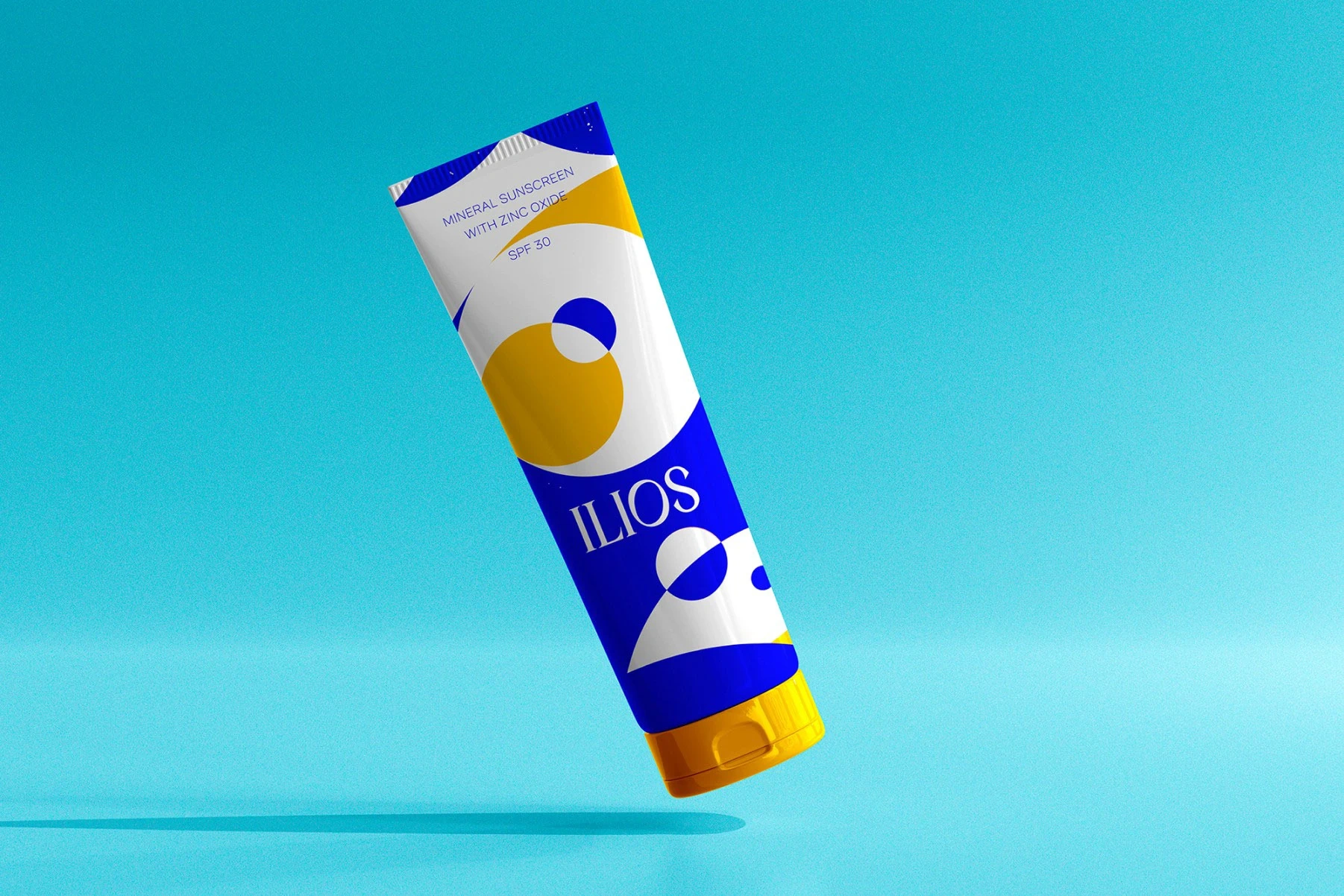 Identity, pattern and packaging design proposal for ILIOS [meaning Sun in Greek,] a sunscreen product line with roots in Greece.