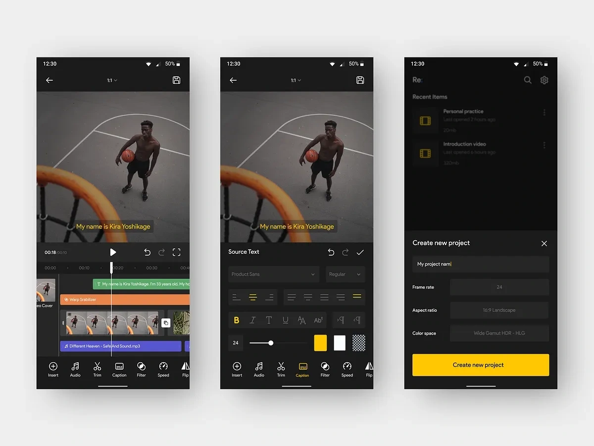 A professional, dark-mode UI/UX for a video editor. Optimized for 4K/8K, it features a clean timeline and adaptive tools for maximum editing speed and control.