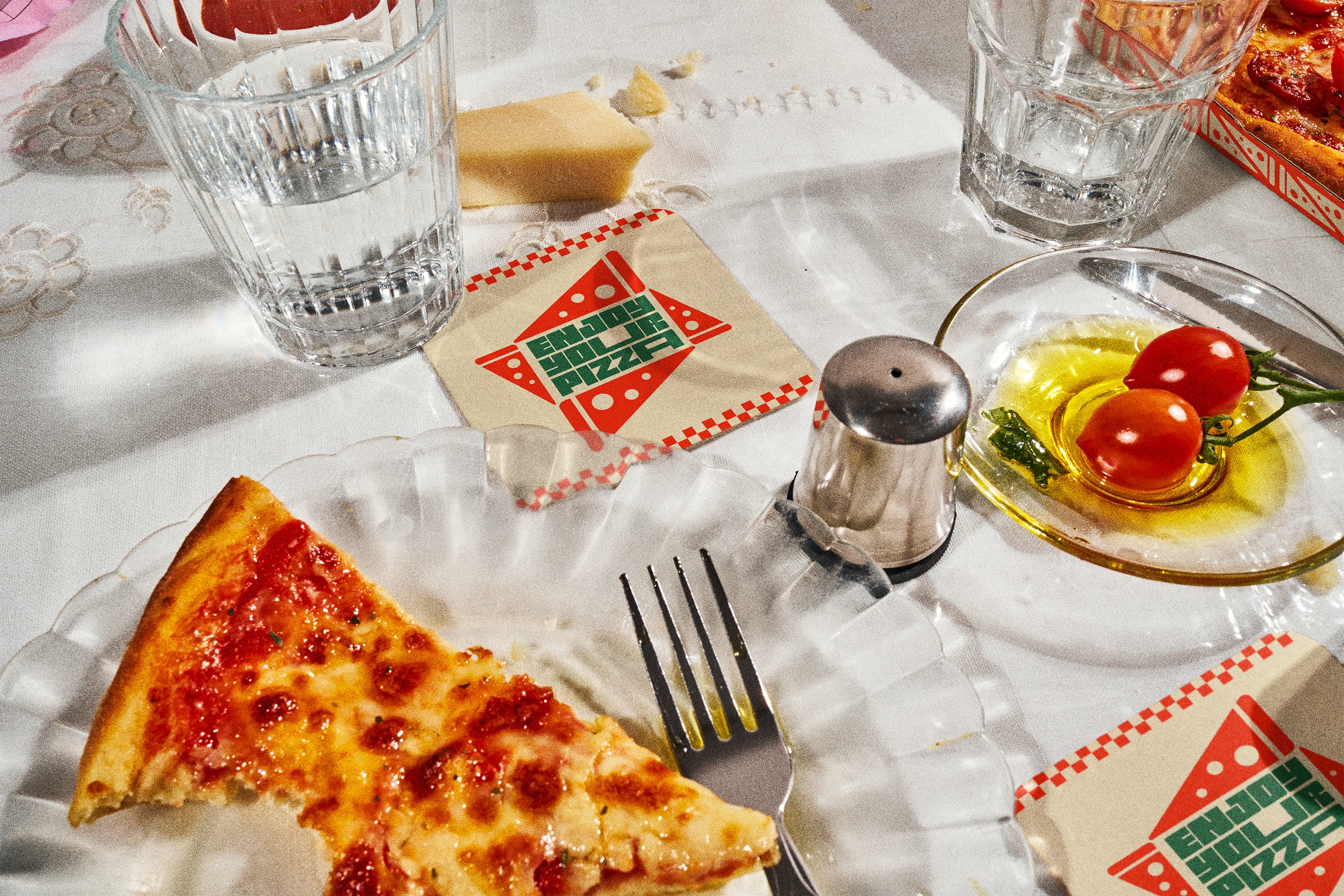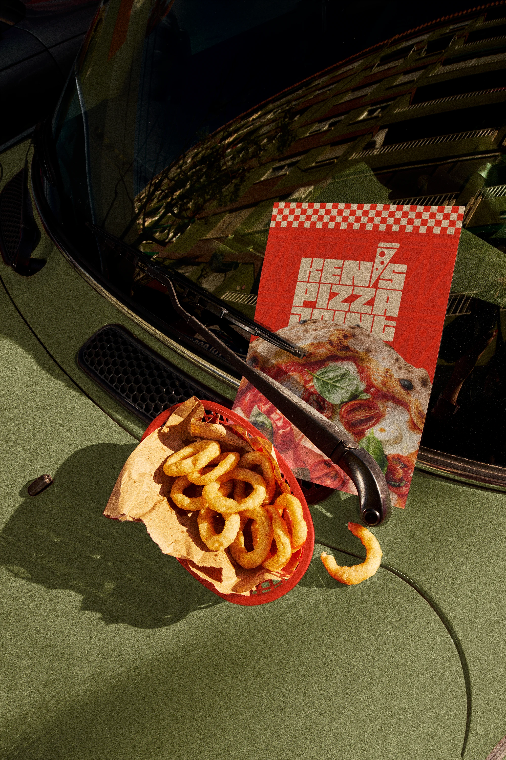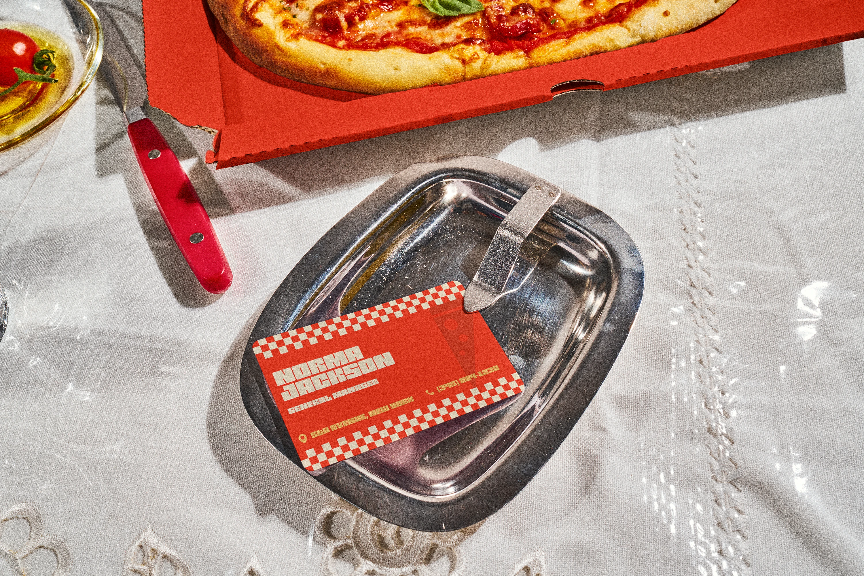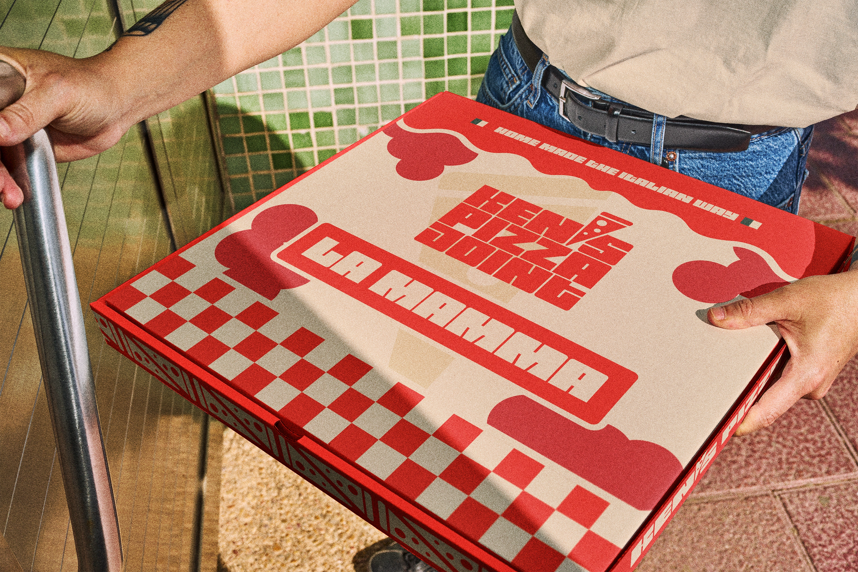 The pizza box serves as the centerpiece of the brand system — designed to look instantly recognizable from afar, with strong typographic hierarchy and a playful logo that doubles as a slice icon. The menu layout mirrors this same modular energy, featuring high-contrast visuals, dynamic composition, and bold section dividers that guide the eye effortlessly. Together, these elements create a cohesive, appetizing experience that elevates even a simple pizza night into a branded moment.