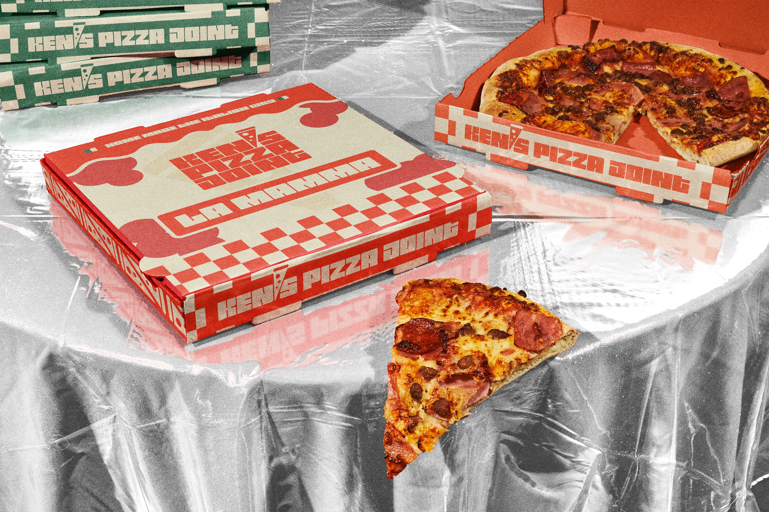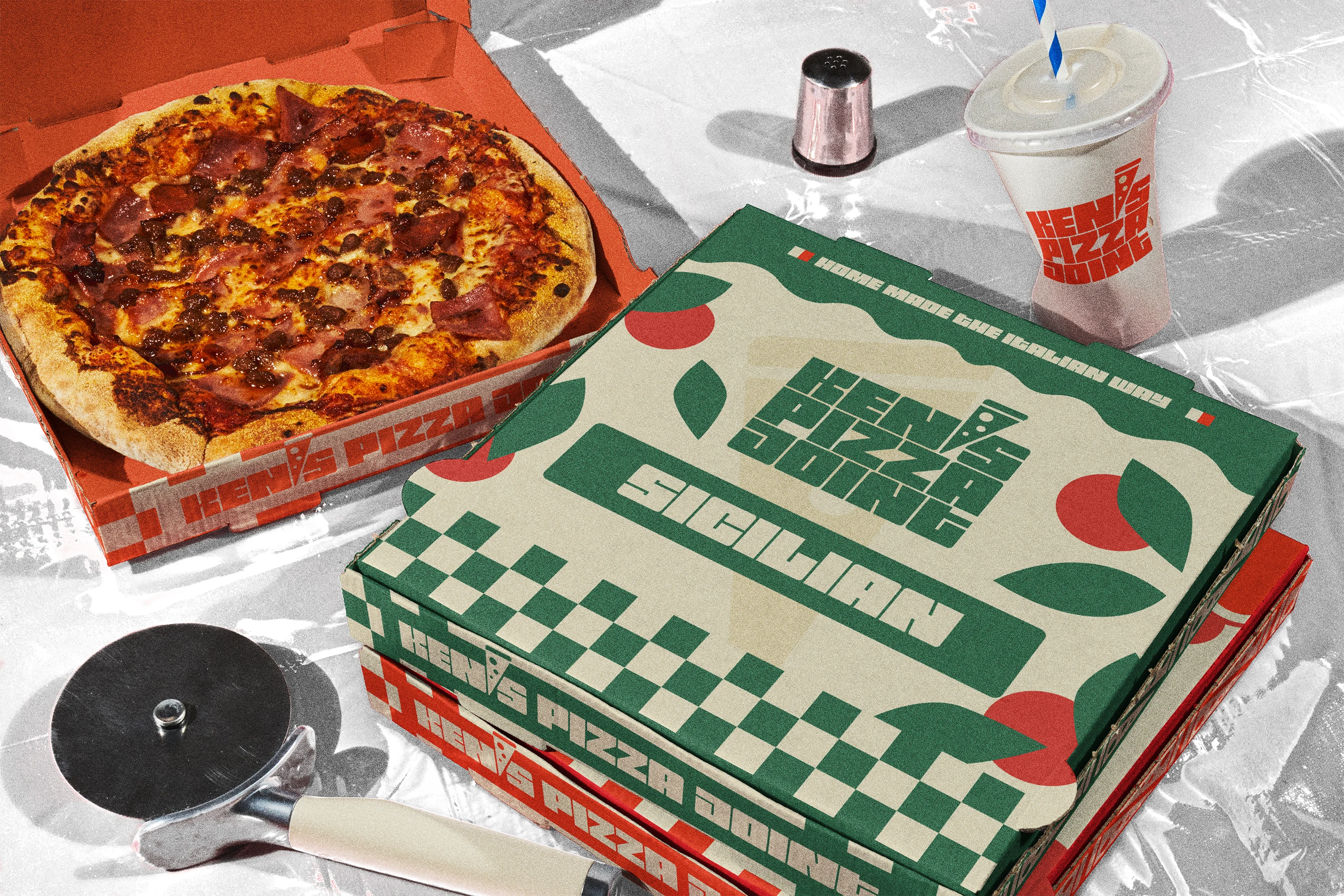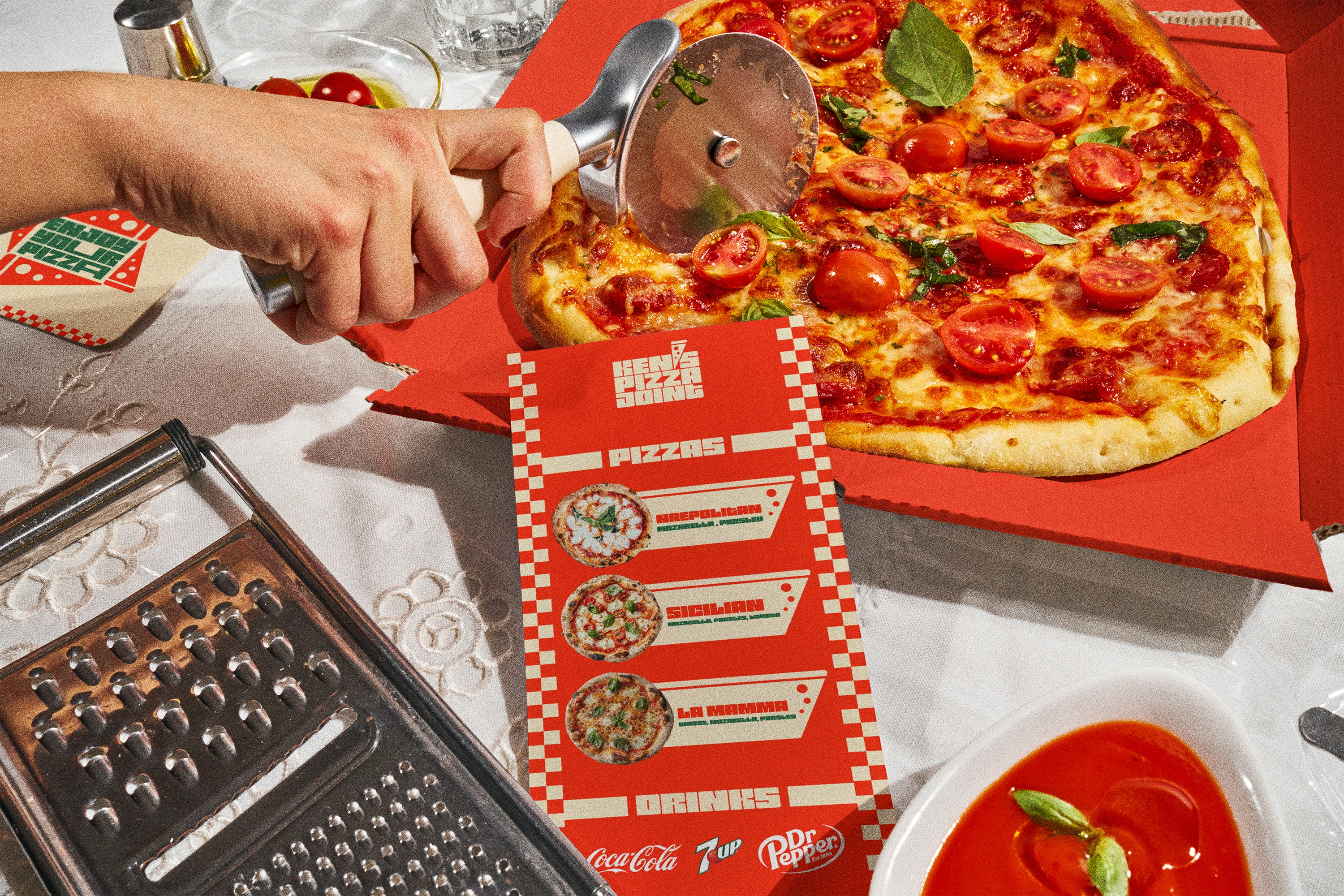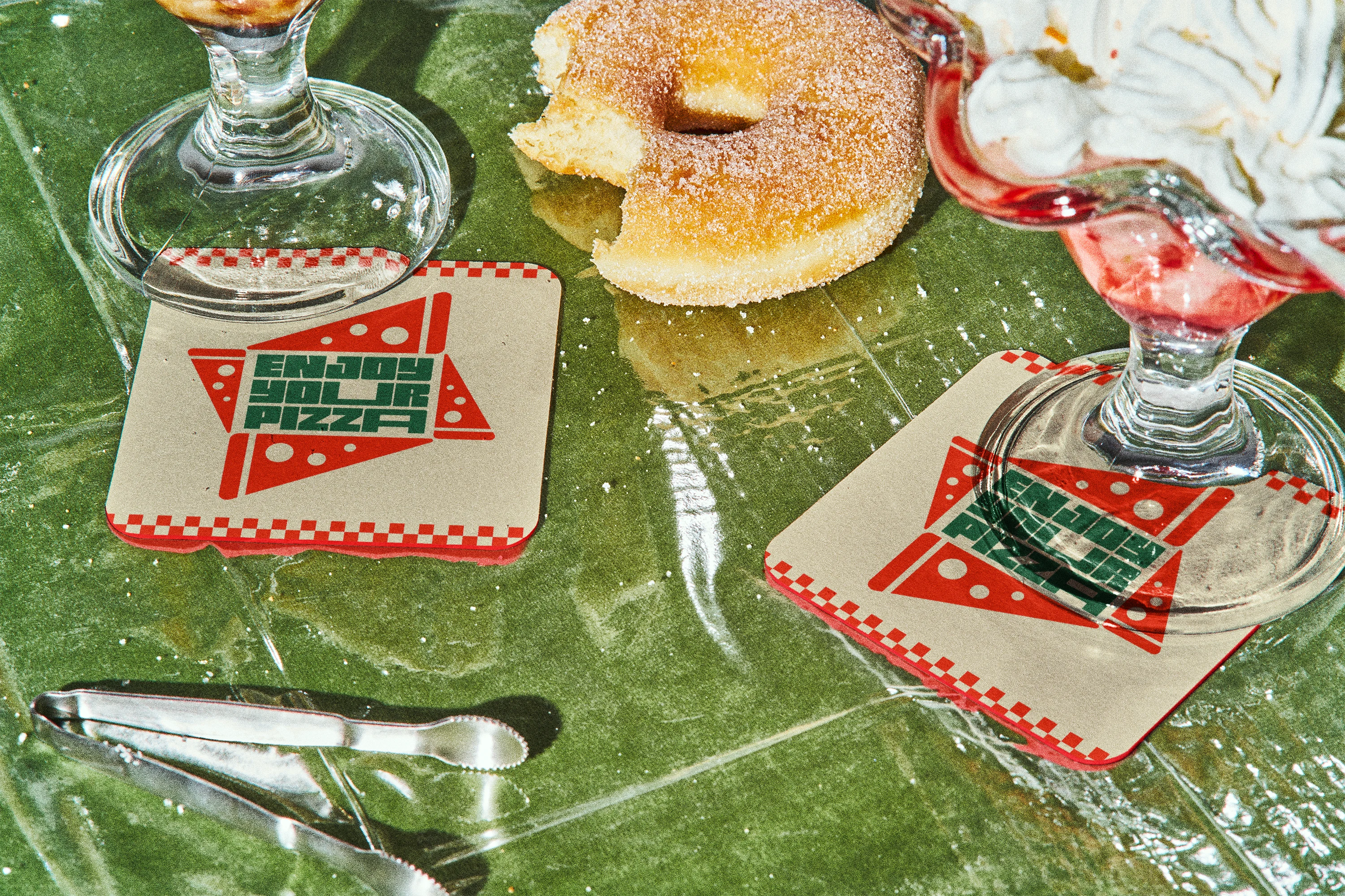 The pizza box serves as the centerpiece of the brand system — designed to look instantly recognizable from afar, with strong typographic hierarchy and a playful logo that doubles as a slice icon. The menu layout mirrors this same modular energy, featuring high-contrast visuals, dynamic composition, and bold section dividers that guide the eye effortlessly. Together, these elements create a cohesive, appetizing experience that elevates even a simple pizza night into a branded moment.
