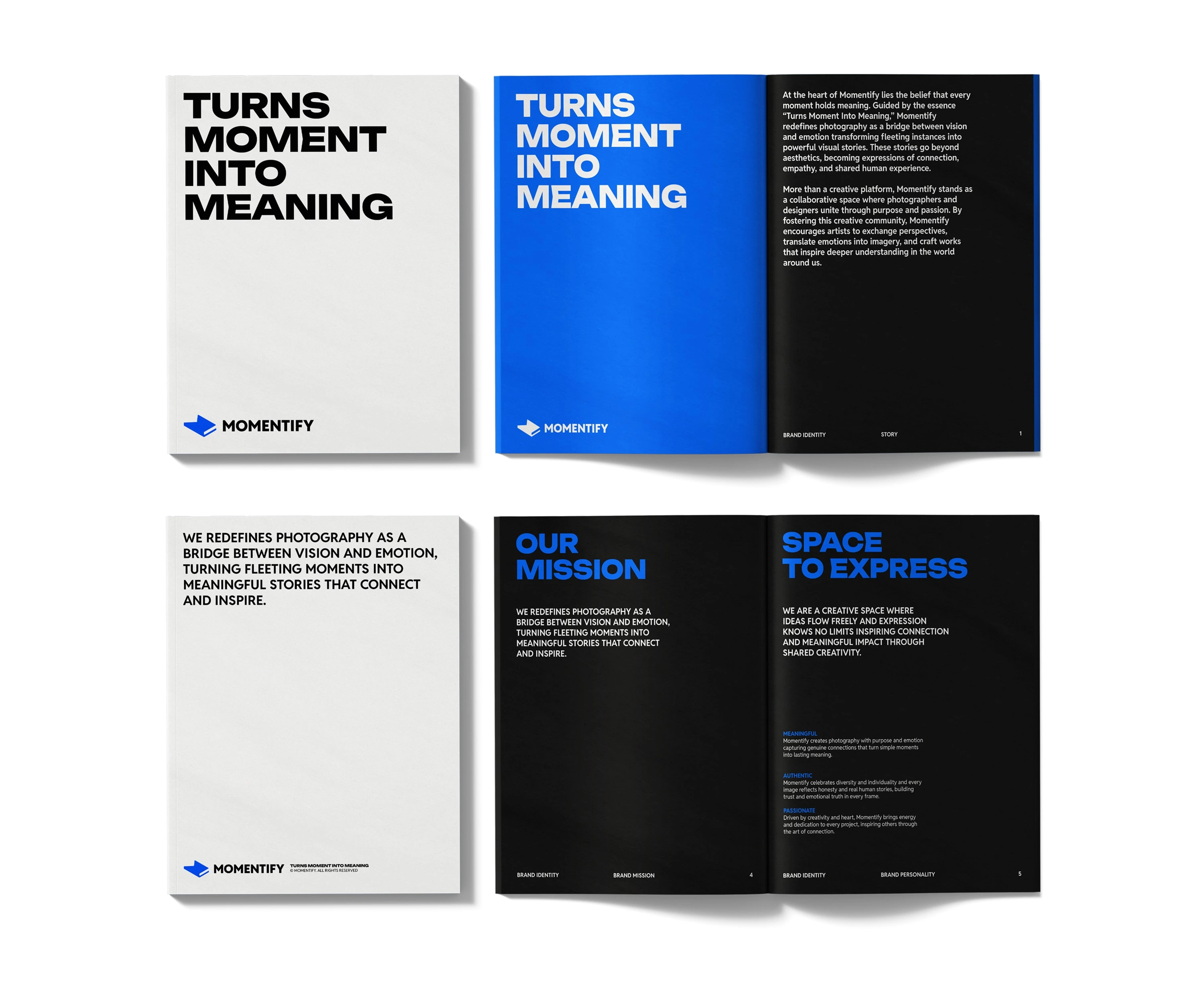 Designed Momentify's brand logo and visual identity that feels bold, confident, and clean that connects with people through authentic stories.