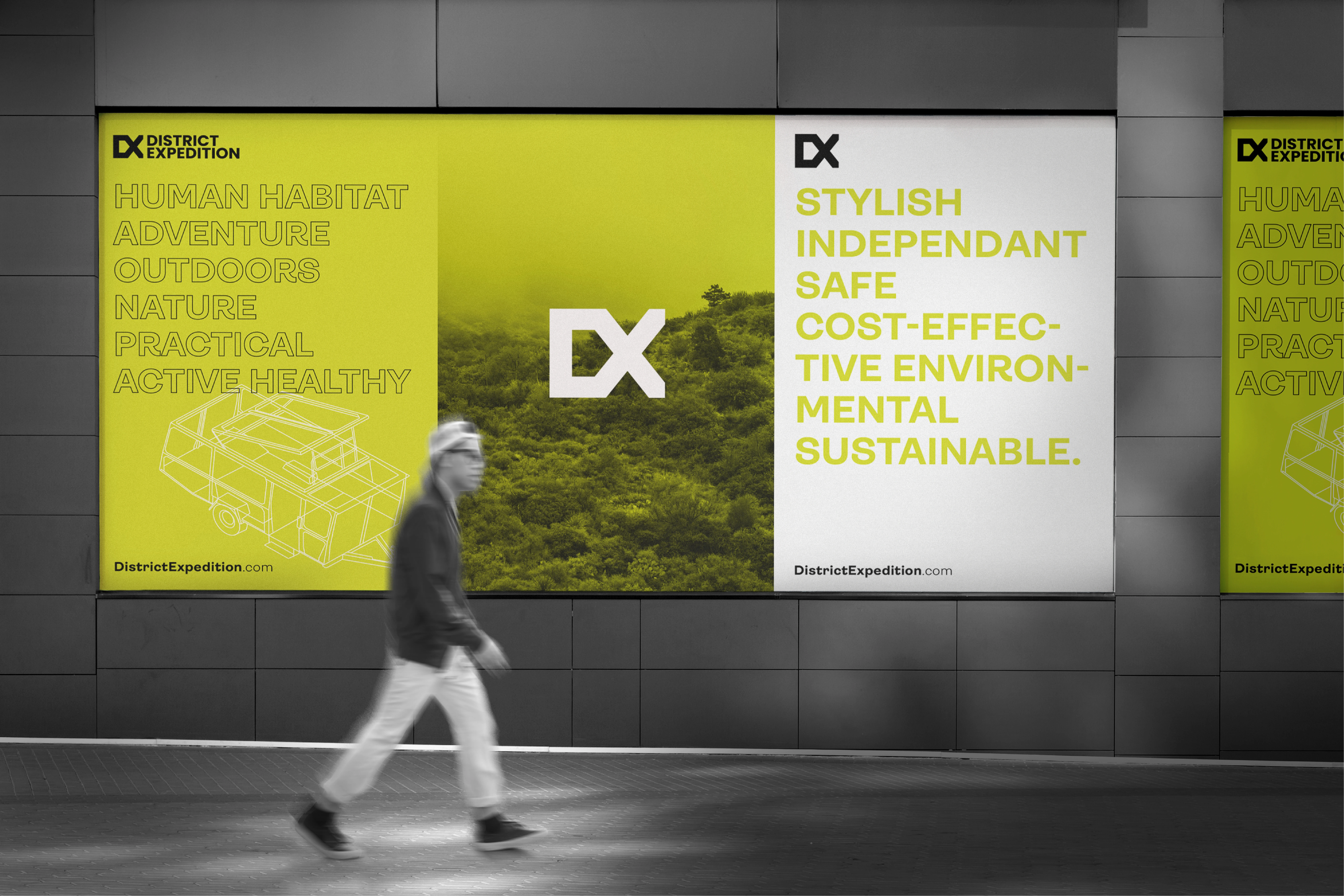 The Colombia DC based brand is a seller of Taxa outdoors camping trailers which provide mobile human habitats for traveling and adventure. It is aimed for active, independent and stylish people. The DX icon resembles a trailer from overhead. The negative space inside the D looks like a house on the side, resembling the main idea of camping trailers - a moving house. The main color is inspired by the nature and at the same time is stylish and modern.
