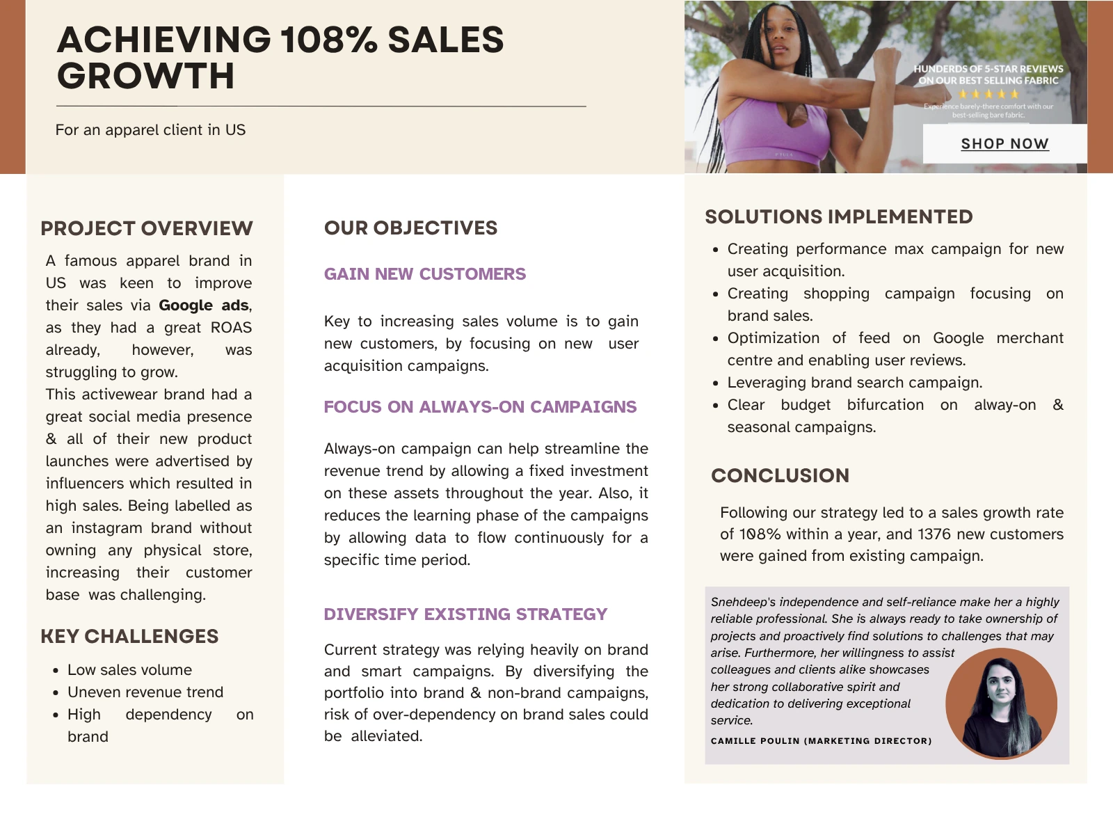 Following my media strategy led to a sales growth rate of 108% within a year, and 1376 new customers were gained from existing campaigns.