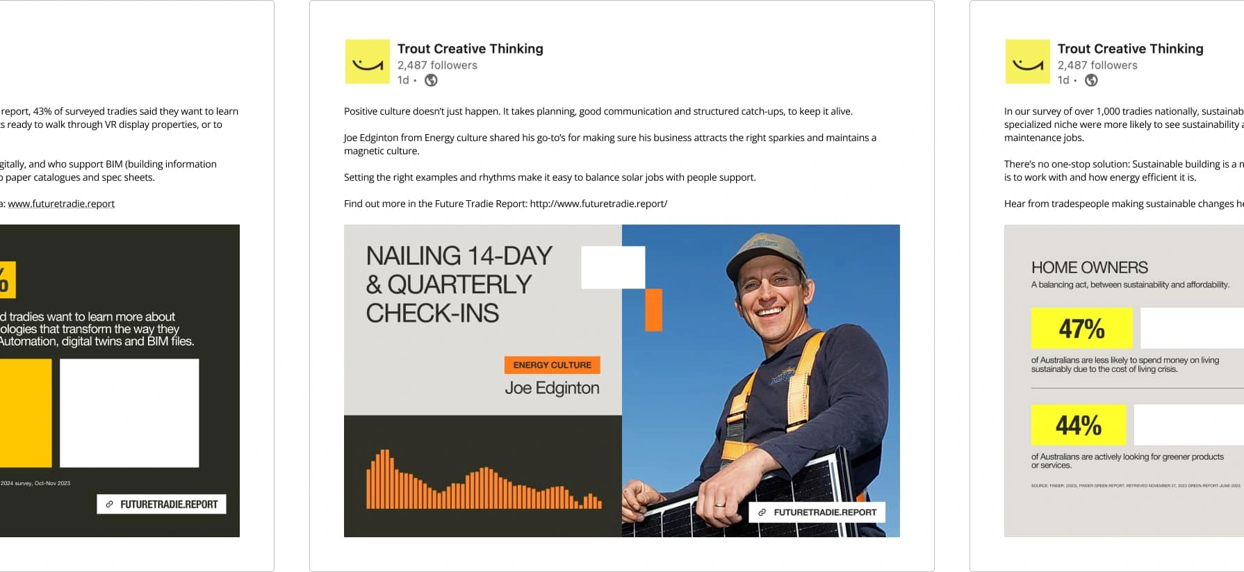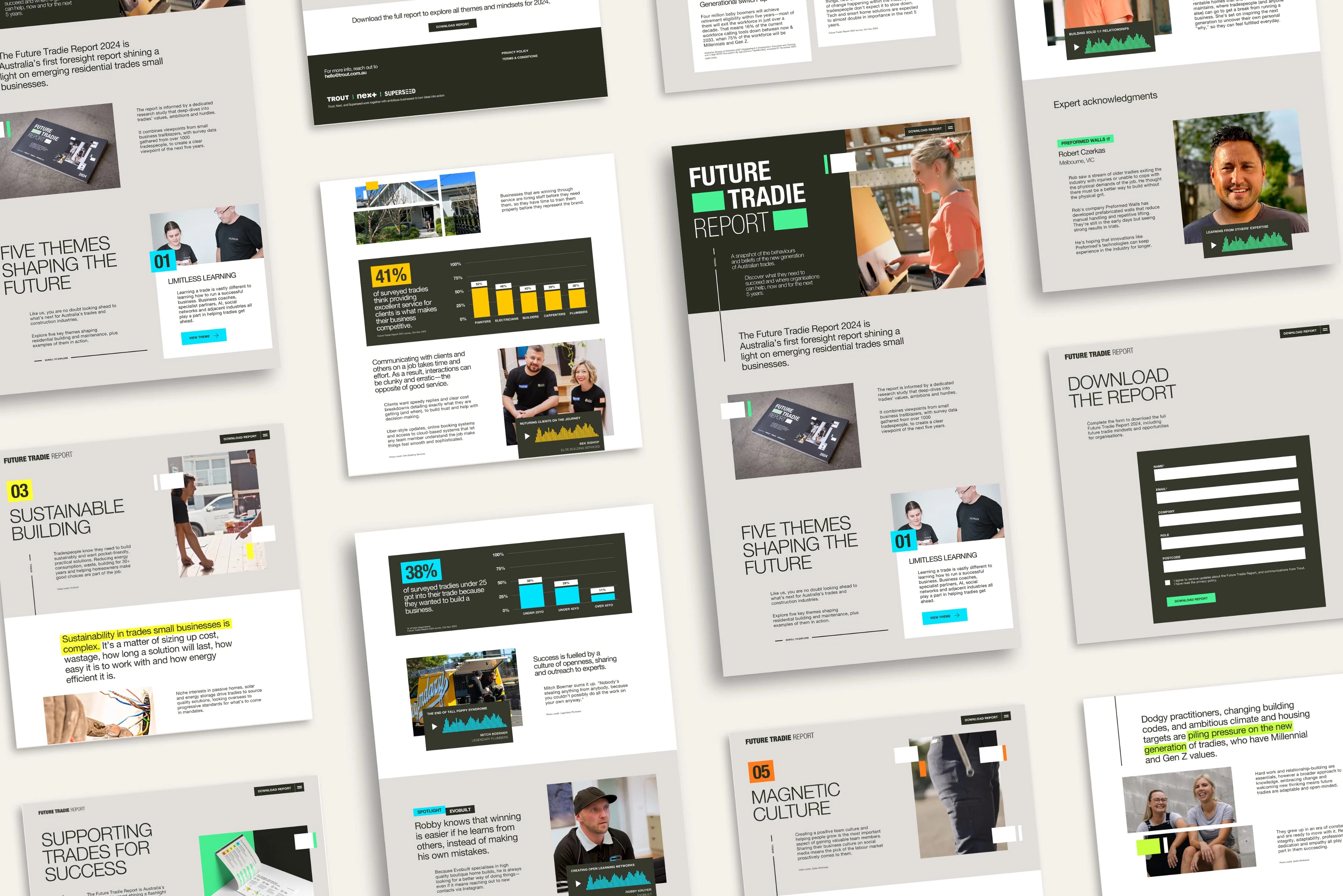 With over 600 report downloads from industry analysts, and a featured showcase in the Sydney Morning Herald, the Future Tradie Report and its associated website has proved an invaluable marketing asset to Trout and Next.