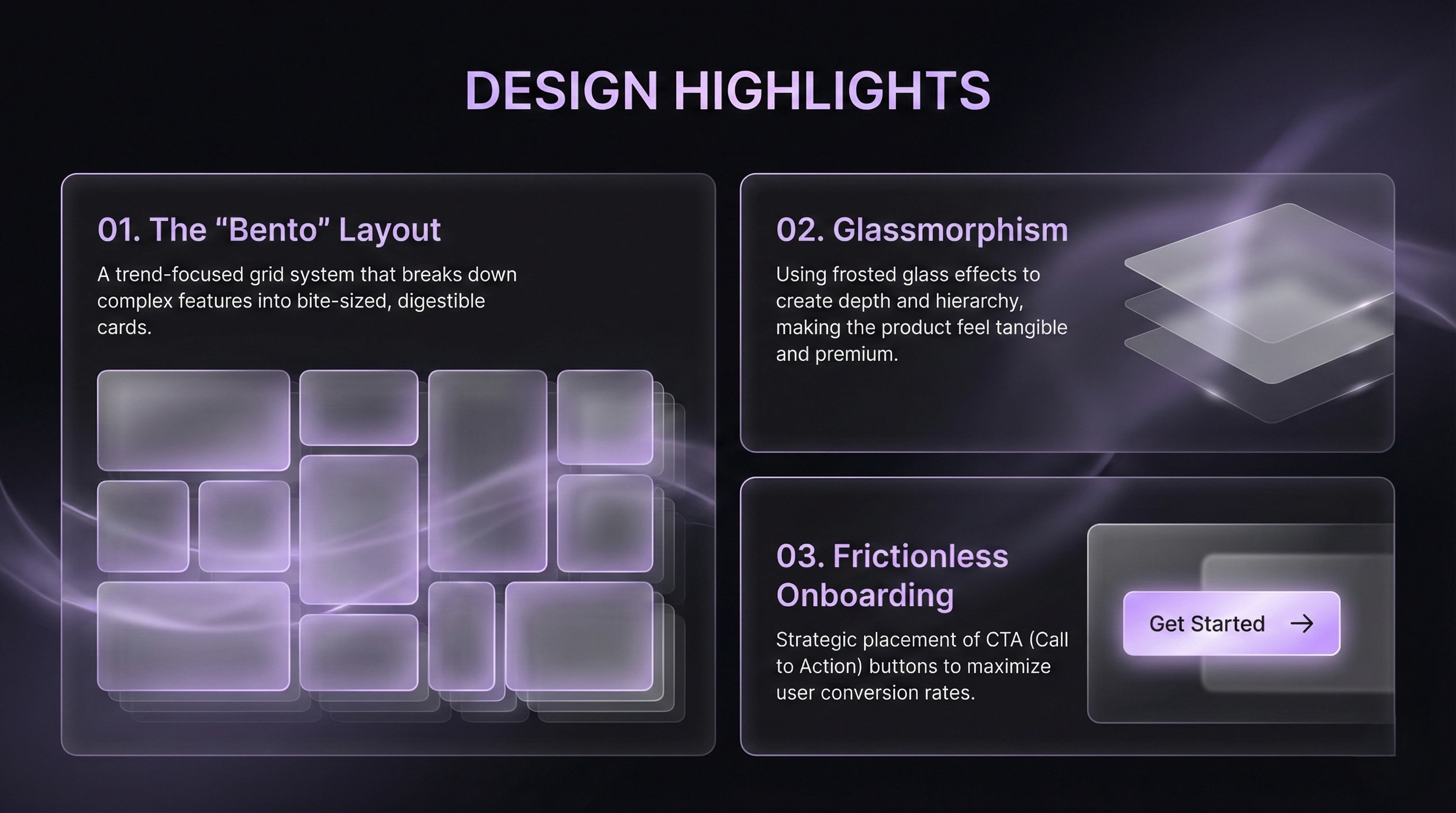 Intelligent SaaS Website & Bento Grid UI. This is a UX/UI case study for a next-generation workspace.