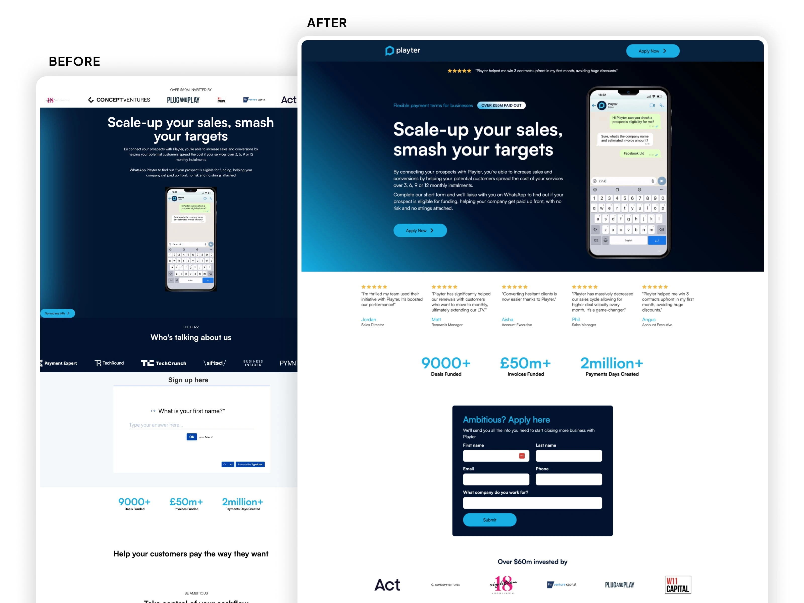 The new page was designed and built in the existing Webflow platform, focusing on clear messaging, a streamlined layout, and a conversion-driven structure. With improved website design and website development strategies, the updated landing page now provides a seamless experience, helping Playter attract and convert more businesses effectively.