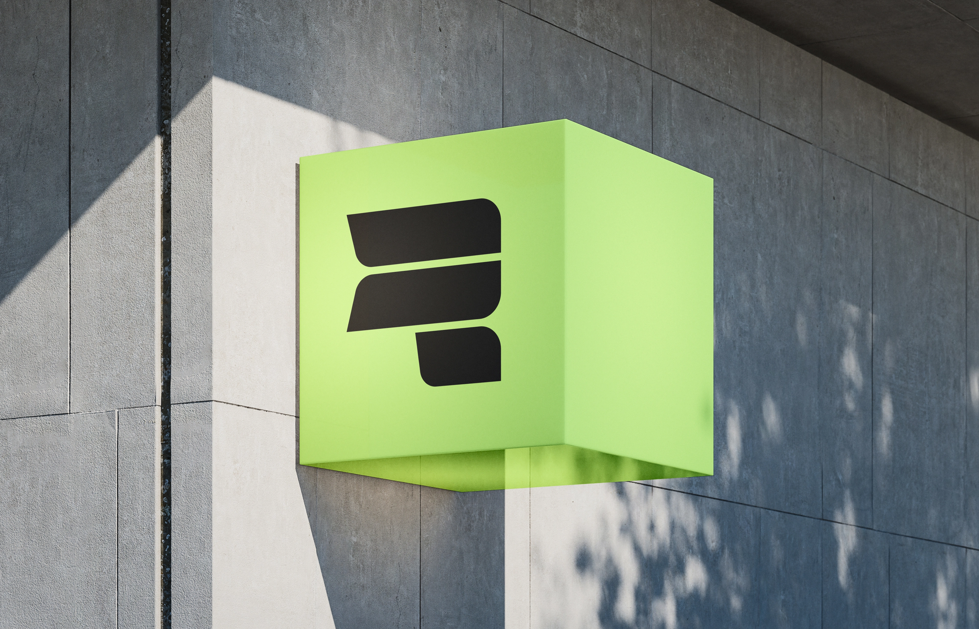 I built a custom logo based on stacked layers (like files) and used a bright lime accent (#D3FF94) to keep it sharp and easy to spot.