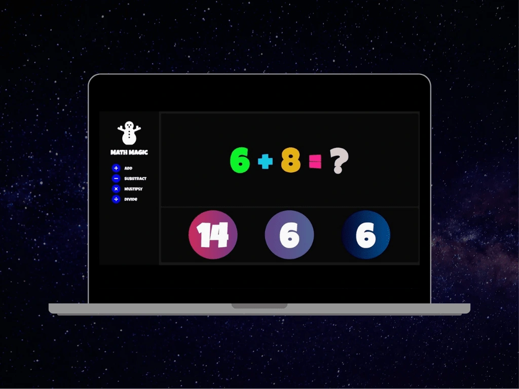An interactive HTML, CSS & JavaScript game that makes learning addition, subtraction, multiplication & division fun and engaging for kids.