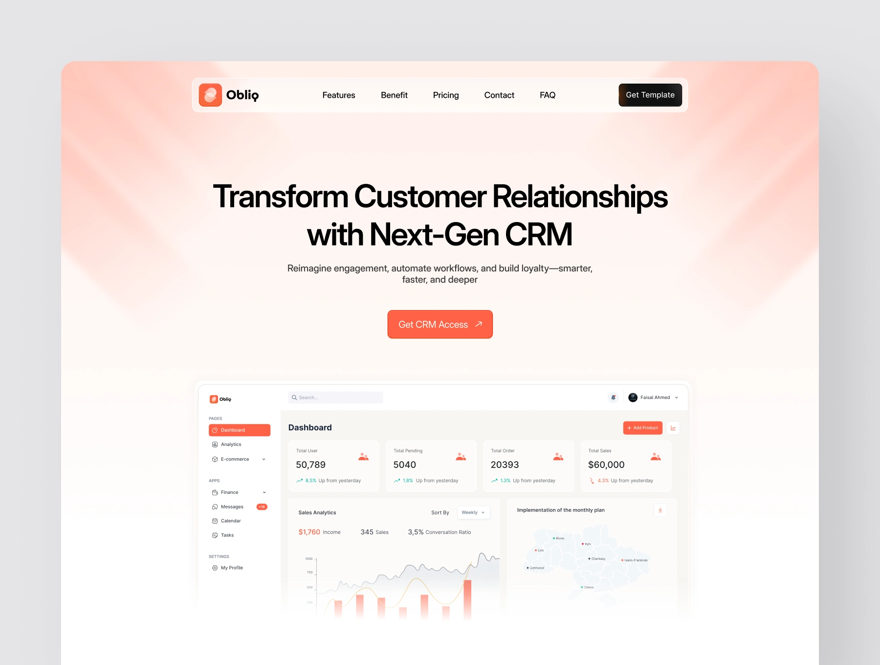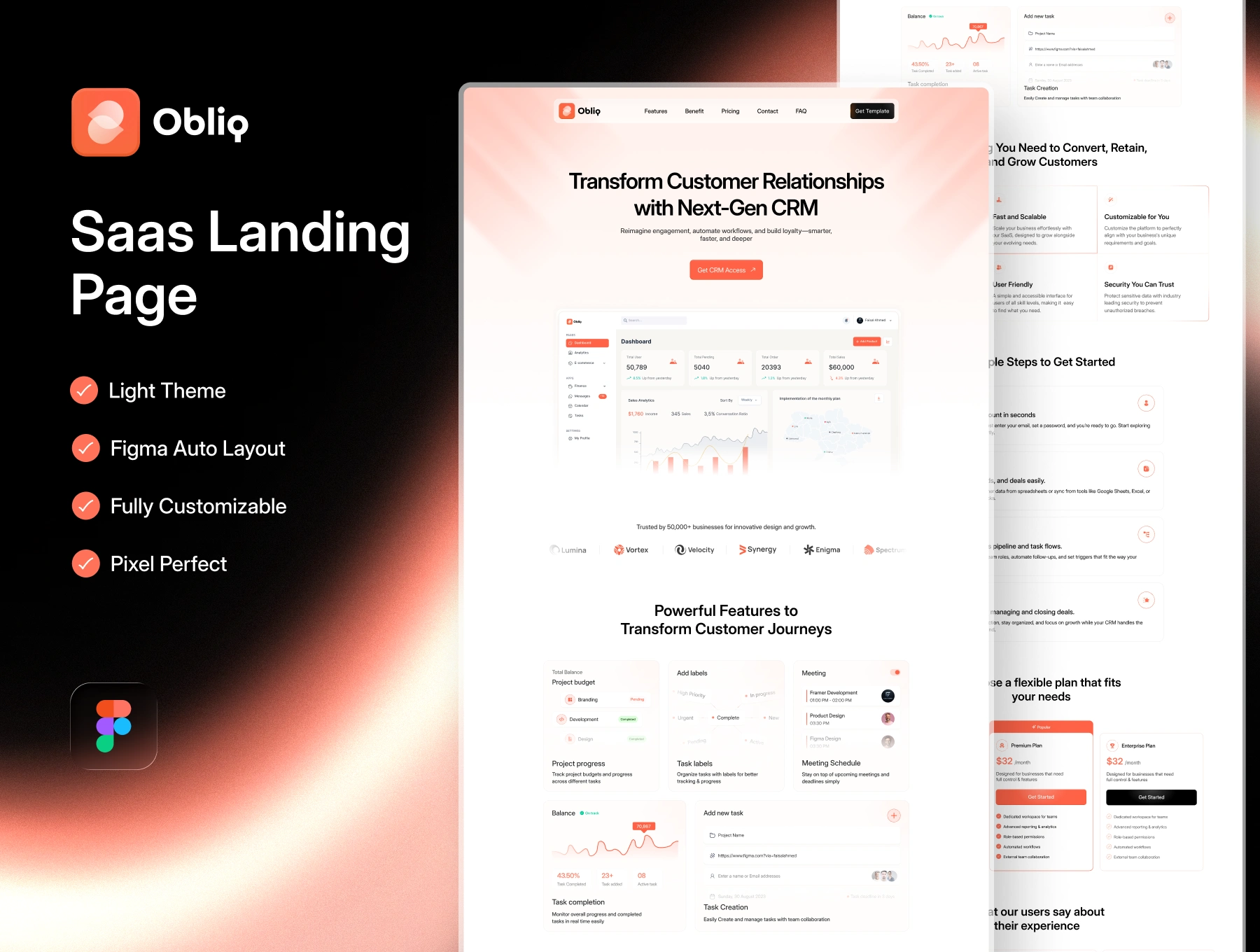 Designed a responsive SaaS landing page for CRM and AI tools using Figma.