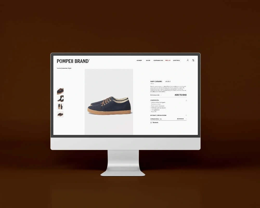 In this simulation, I propose an example of an ecommerce website for the sneakers brand Pompeii, in which I base on the brand identity and products they have fo