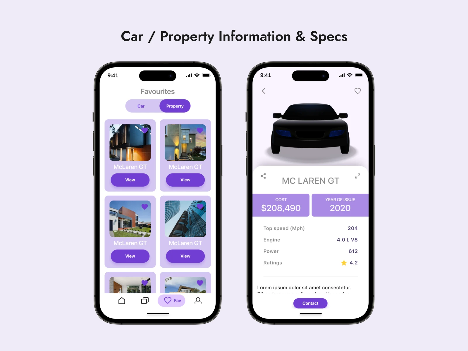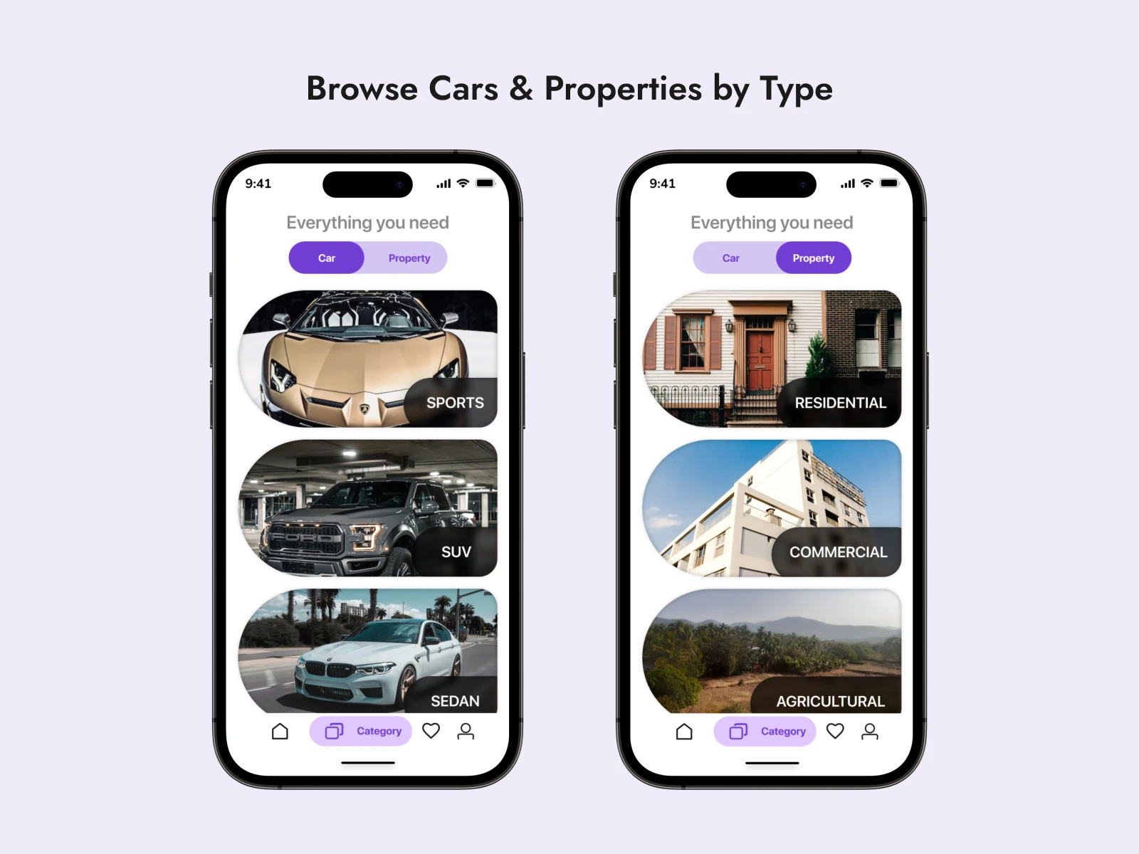 This project is a mobile app design concept that brings car and property discovery into a single platform. The app allows users to explore vehicles and real estate listings, view detailed information, save favourites, and connect easily—all through a clean, intuitive interface.