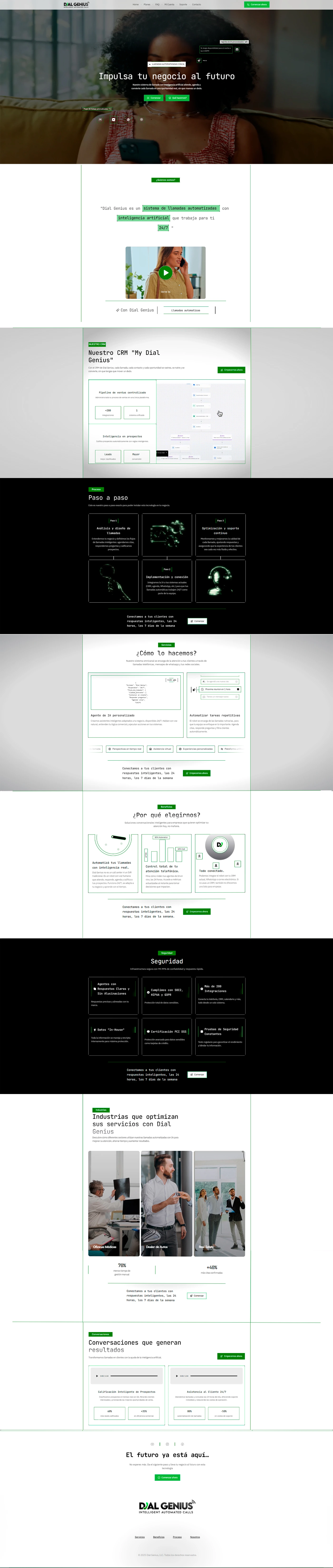 AI calling system website redesign for Dial Genius. Multi-page with features, industries, security & benefits. Tech-forward & responsive.