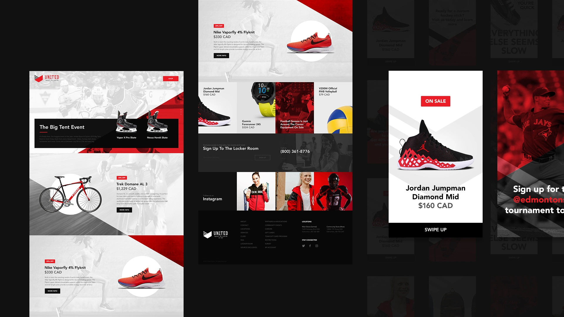 Landing page design for an annual event for a specialty sports store.