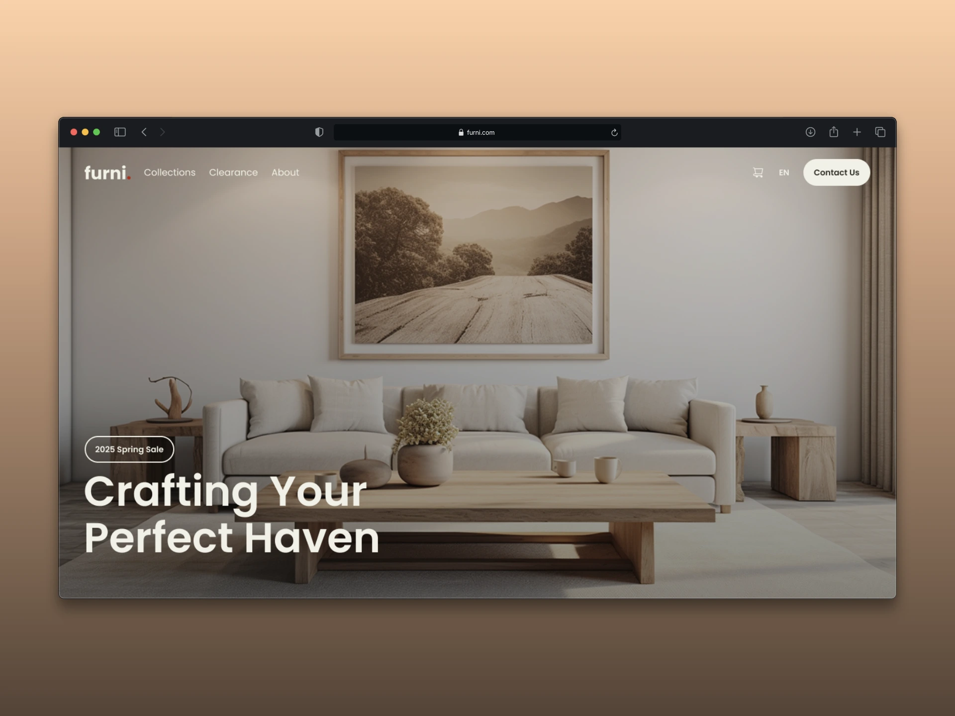 Inspired by Furni’s use of organic materials and grounding energy, the website’s visual identity balances warm, earthy tones with clean, minimalist layouts. Textures and subtle animations bring a tactile quality to the screen, reinforcing the brand’s commitment to craftsmanship and authenticity.