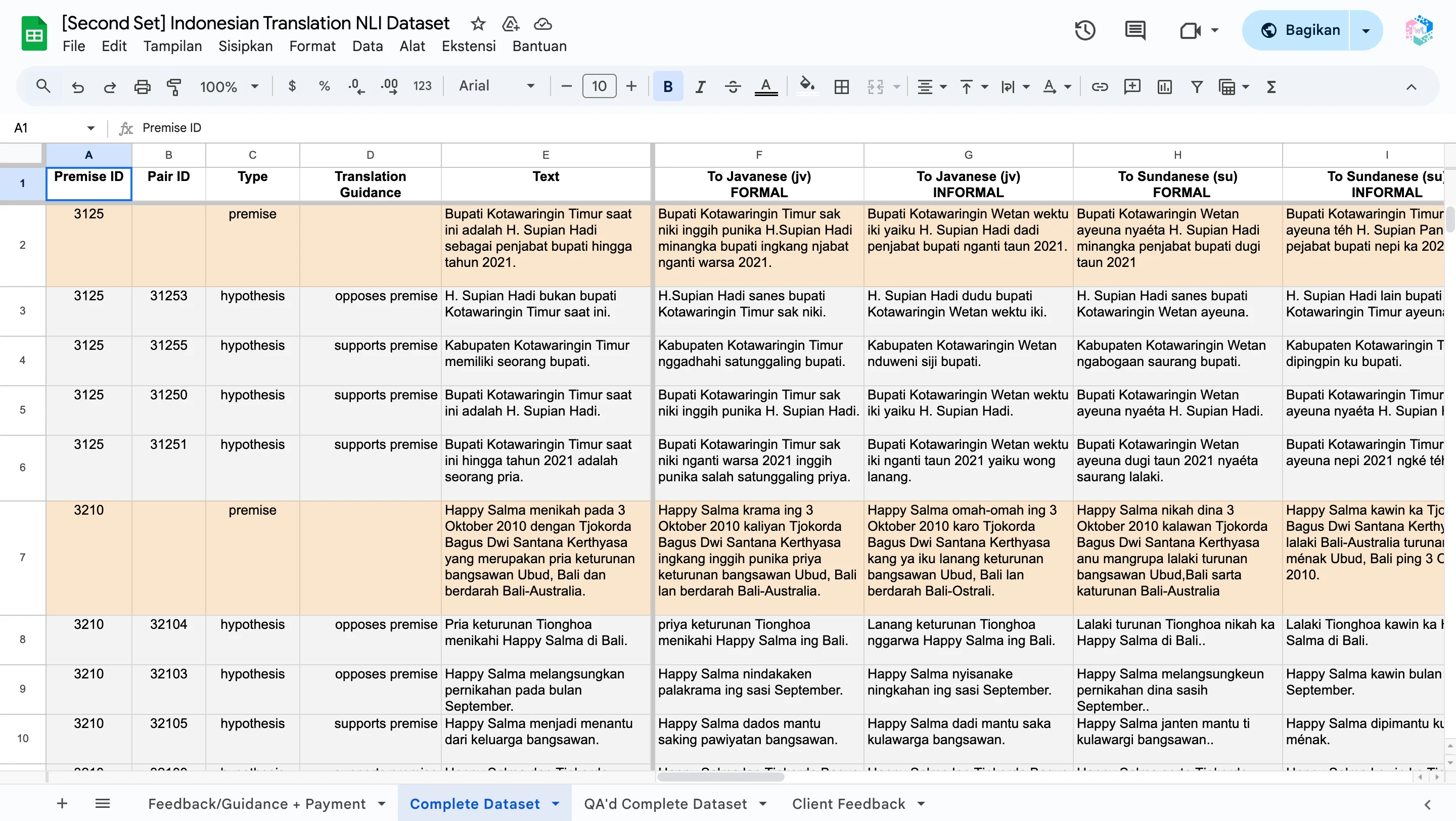 Created Indonesian NLI dataset with translations into Javanese and Sundanese (formal & informal) for AI training and multilingual research.