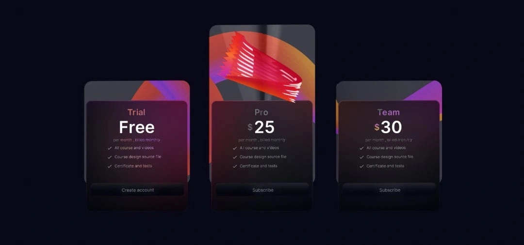 I designed a 3D price card using Spline to make the pricing section feel more interactive and visually engaging.