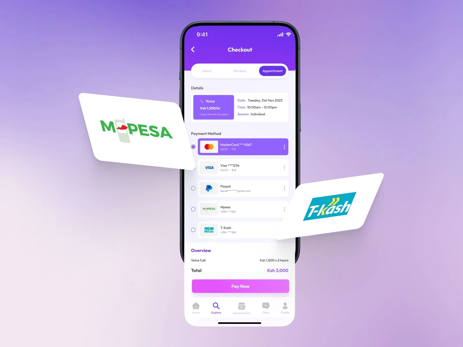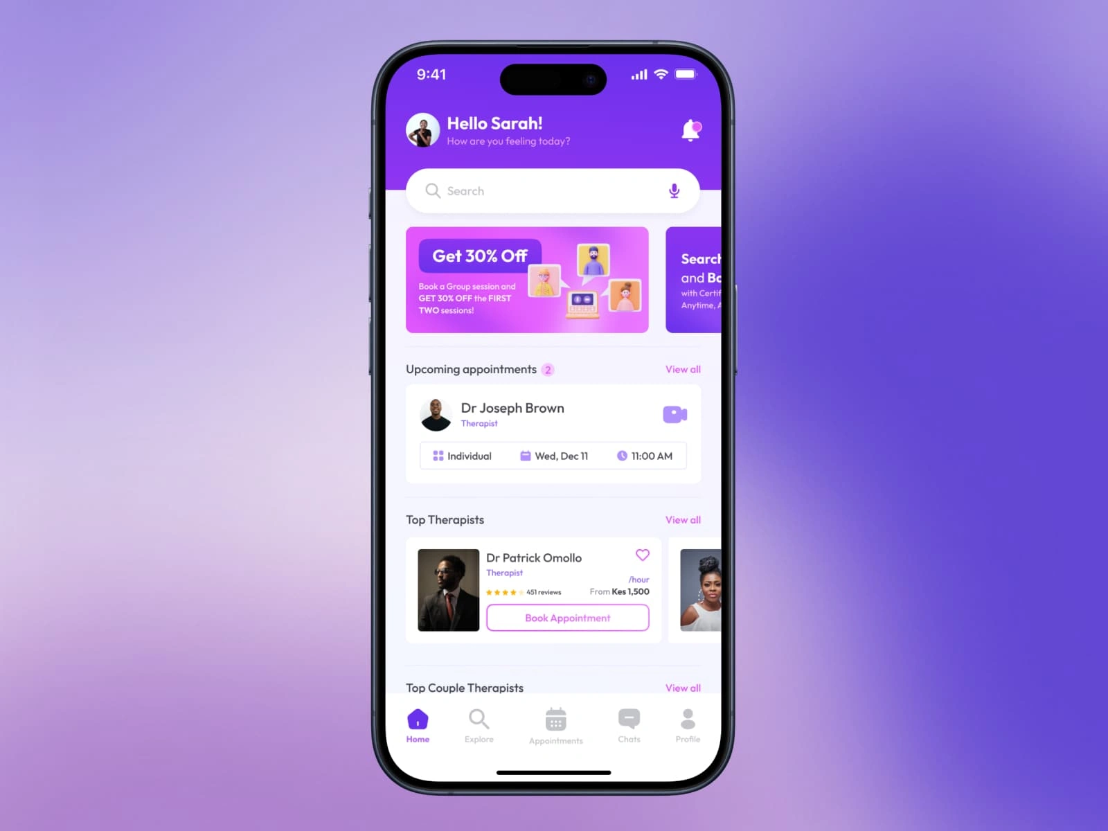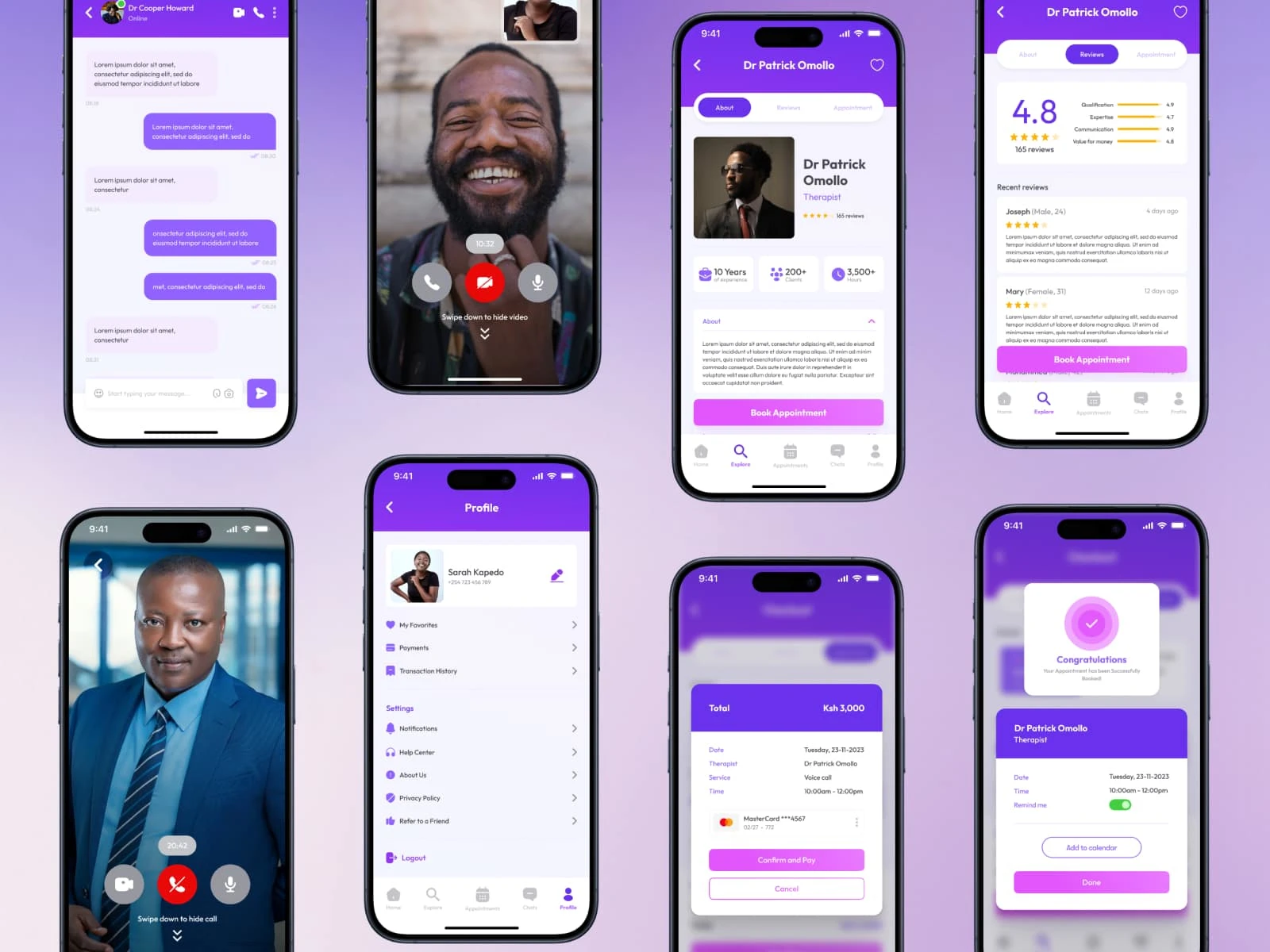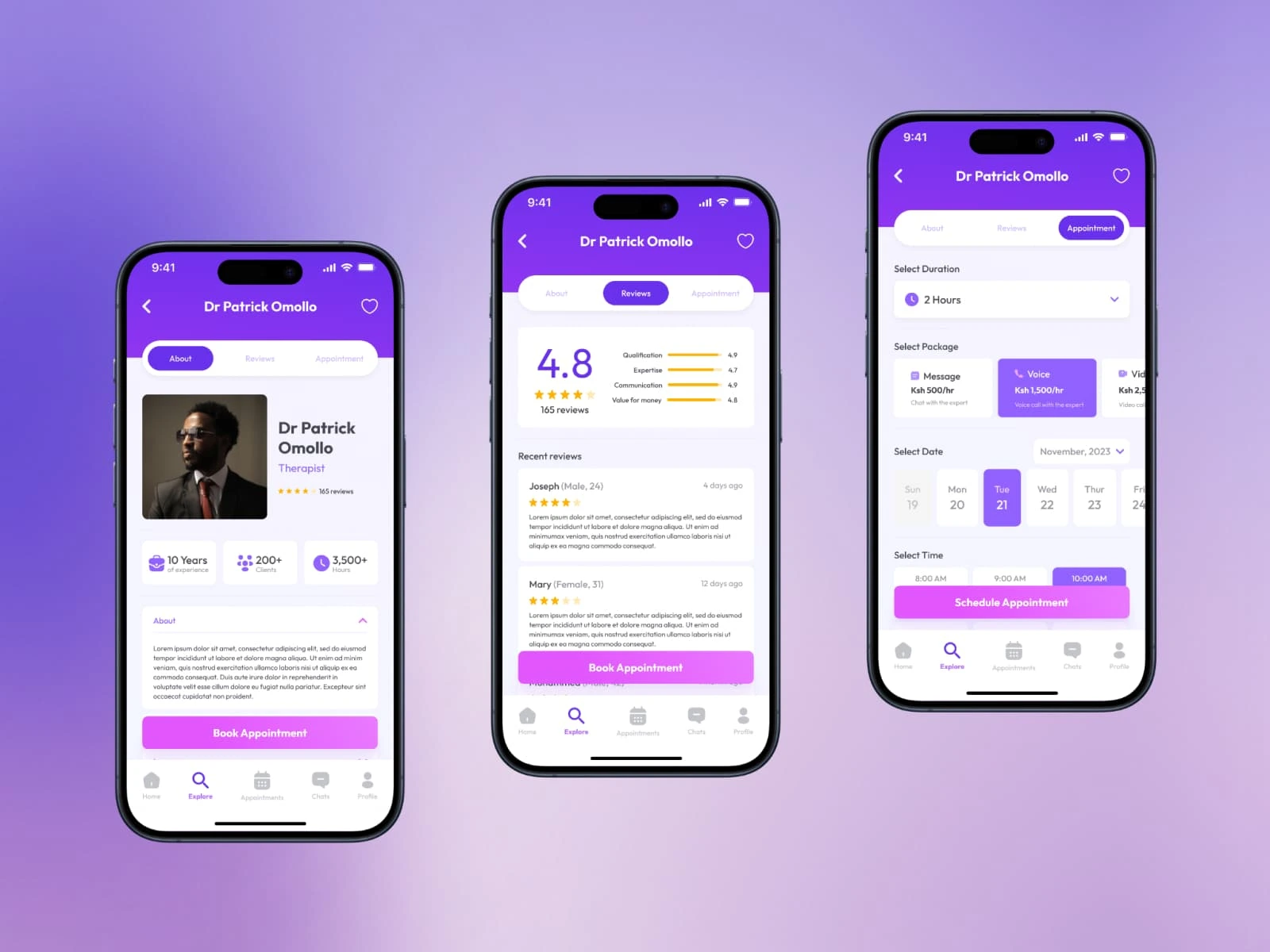 Booking a session is a simple and stress-free process. Users begin by exploring a specialist’s profile, which includes a short bio, areas of expertise, ratings, and reviews. They then choose how they want to connect, either via message, phone, or video, directly in the app, with each having a different price. Finally, they confirm the session using a clean, straightforward booking screen that captures the session type, date, and time. The experience is designed to reduce mental effort while making scheduling smooth and intuitive.