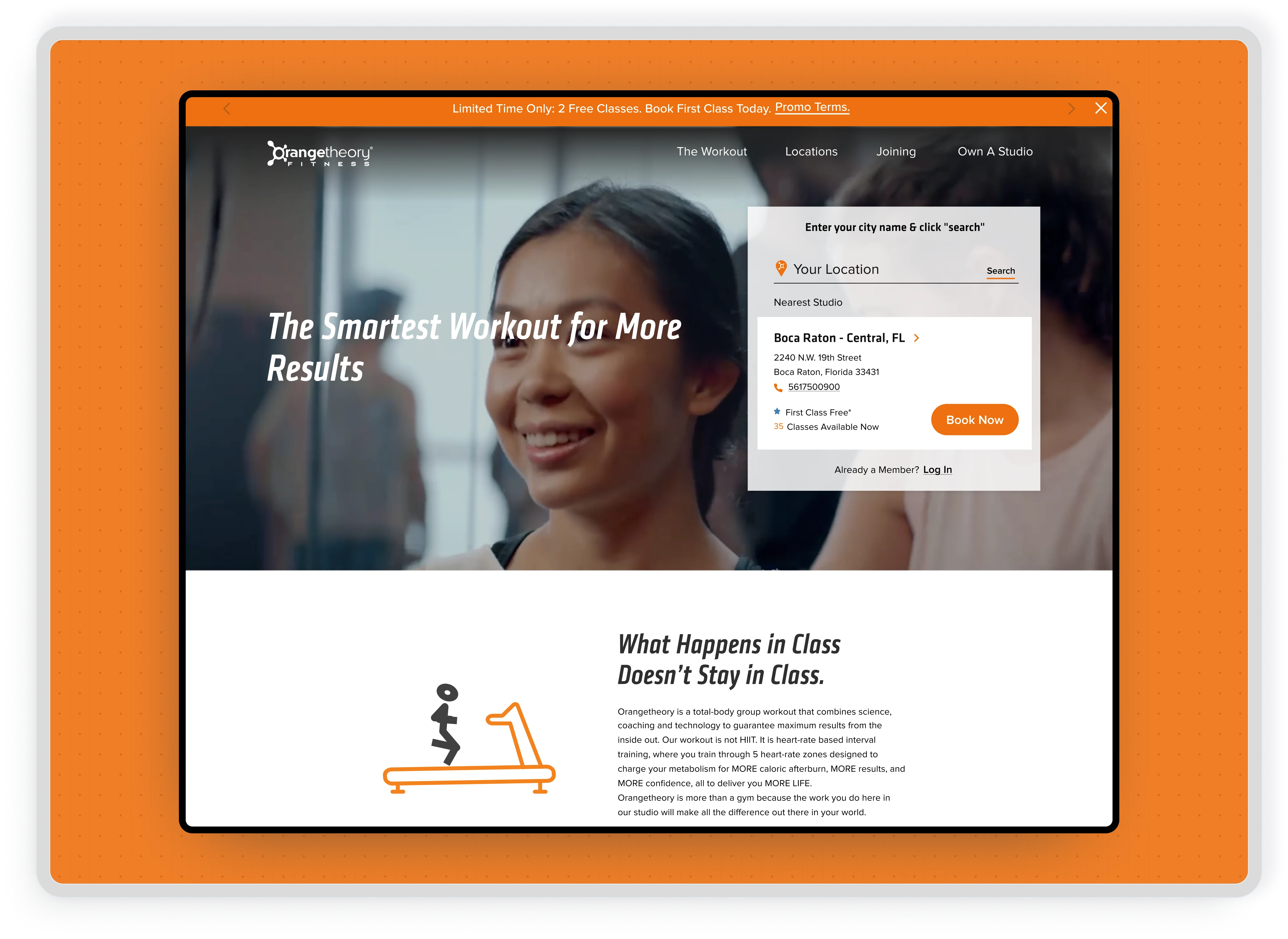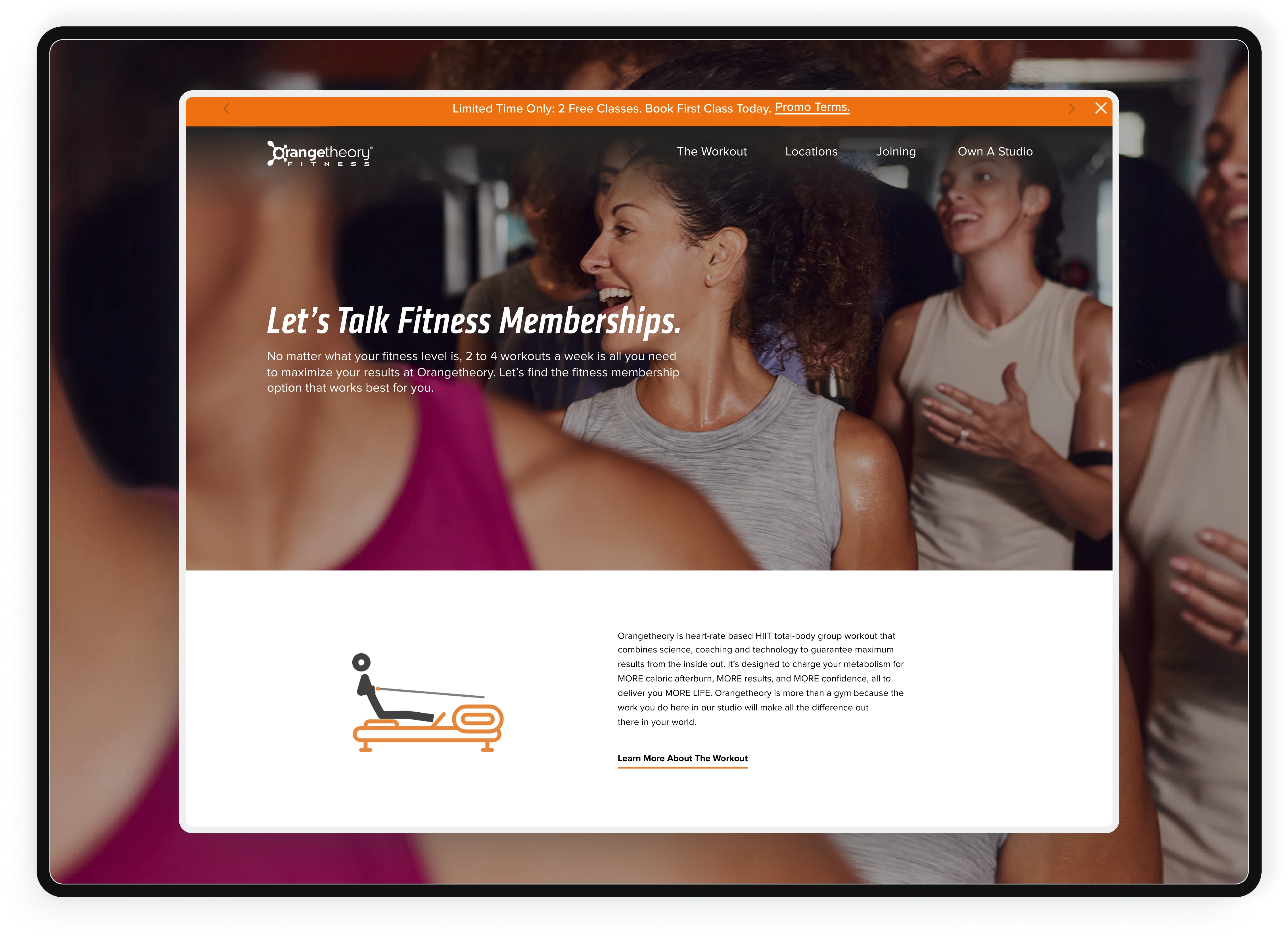 Weak Acquisition Messaging: Orangetheory wanted to expand its member base by leveraging brand partnerships, but the digital campaigns weren’t making full use of those collaborations. The messaging lacked clarity, and pages weren’t structured to convert first-time visitors into loyal members.
