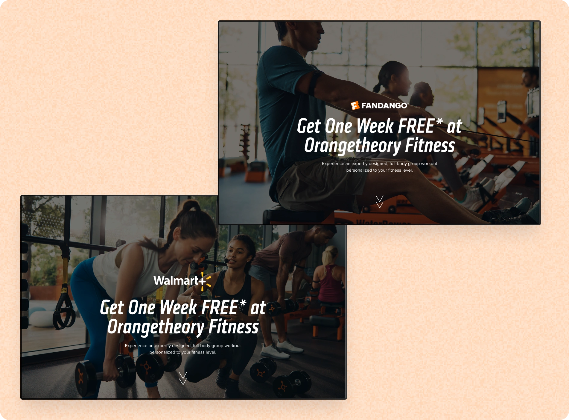 Promotional Landing Pages → Visually compelling campaign pages featuring partner brand logos, clear messaging, and concise copy. The design balanced Orangetheory’s high-energy brand with credibility borrowed from household-name partners, boosting both trust and appeal.