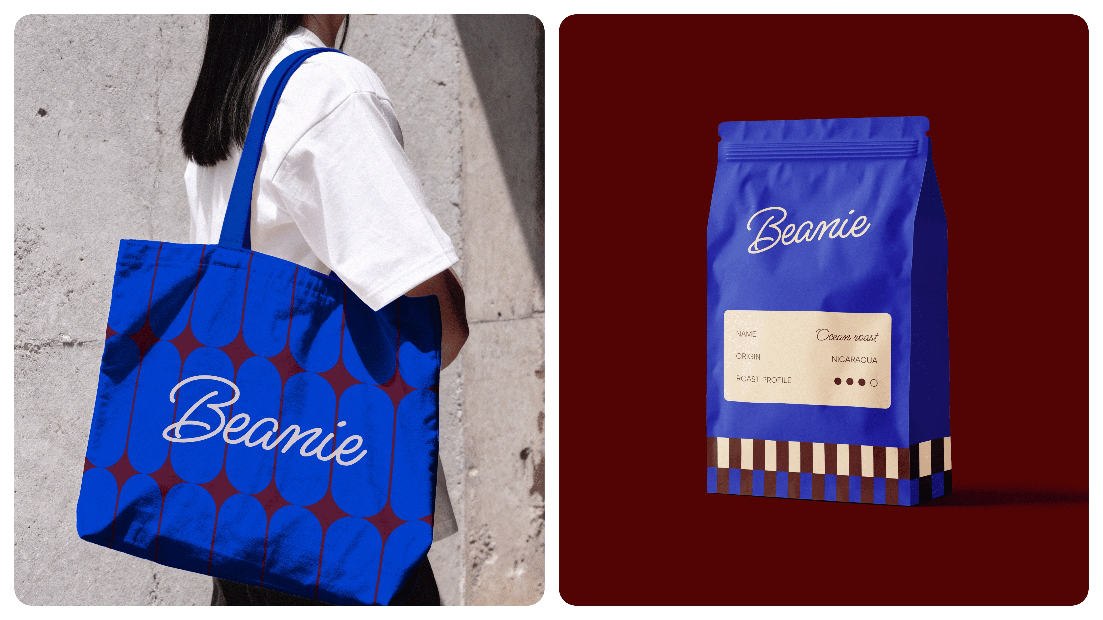 Built a modern coffee brand identity for Beanie that feels distinct yet approachable through pattern, color, and a fluid logomark.