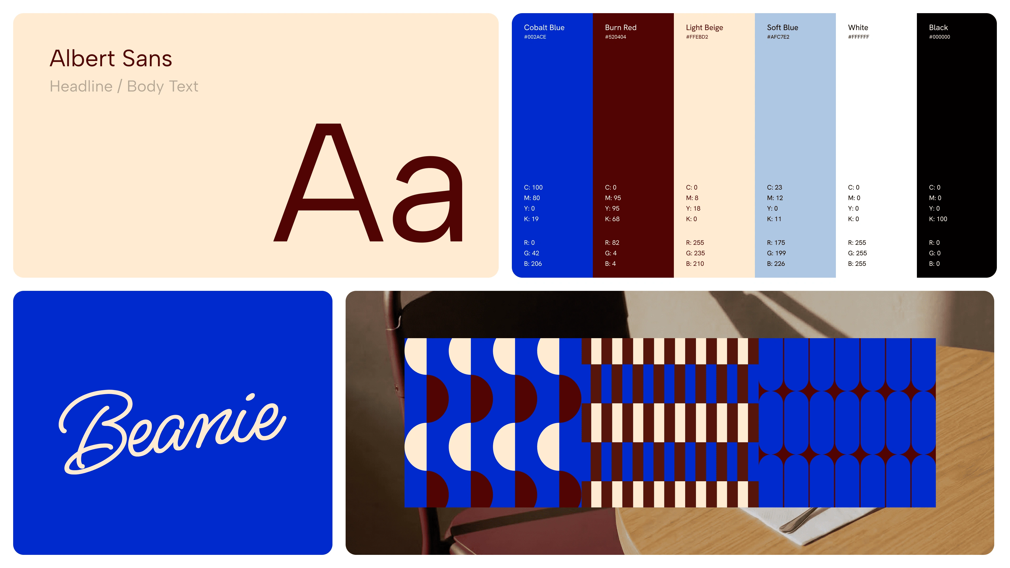 What I did: Built a visual identity system anchored in geometric patterning, a fluid logo, and a bold but balanced palette to help Beanie stand out across digital and physical touchpoints.