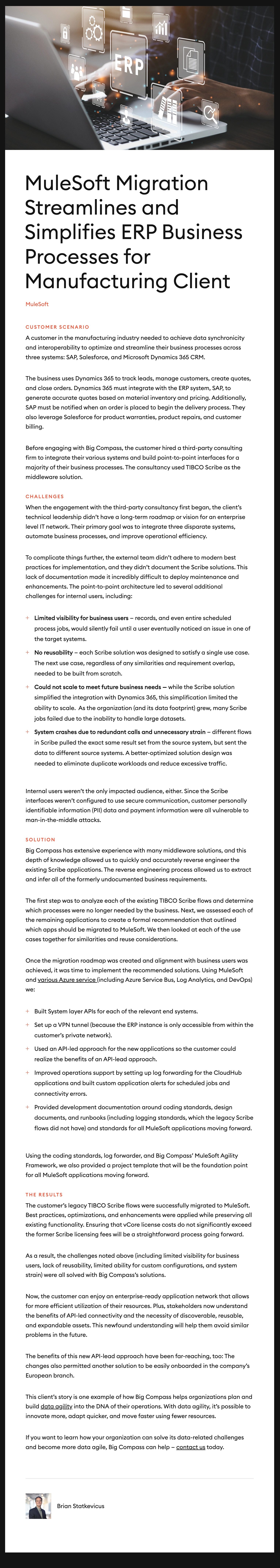 MuleSoft Migration Streamlines and Simplifies ERP Business Processes for Manufacturing Client