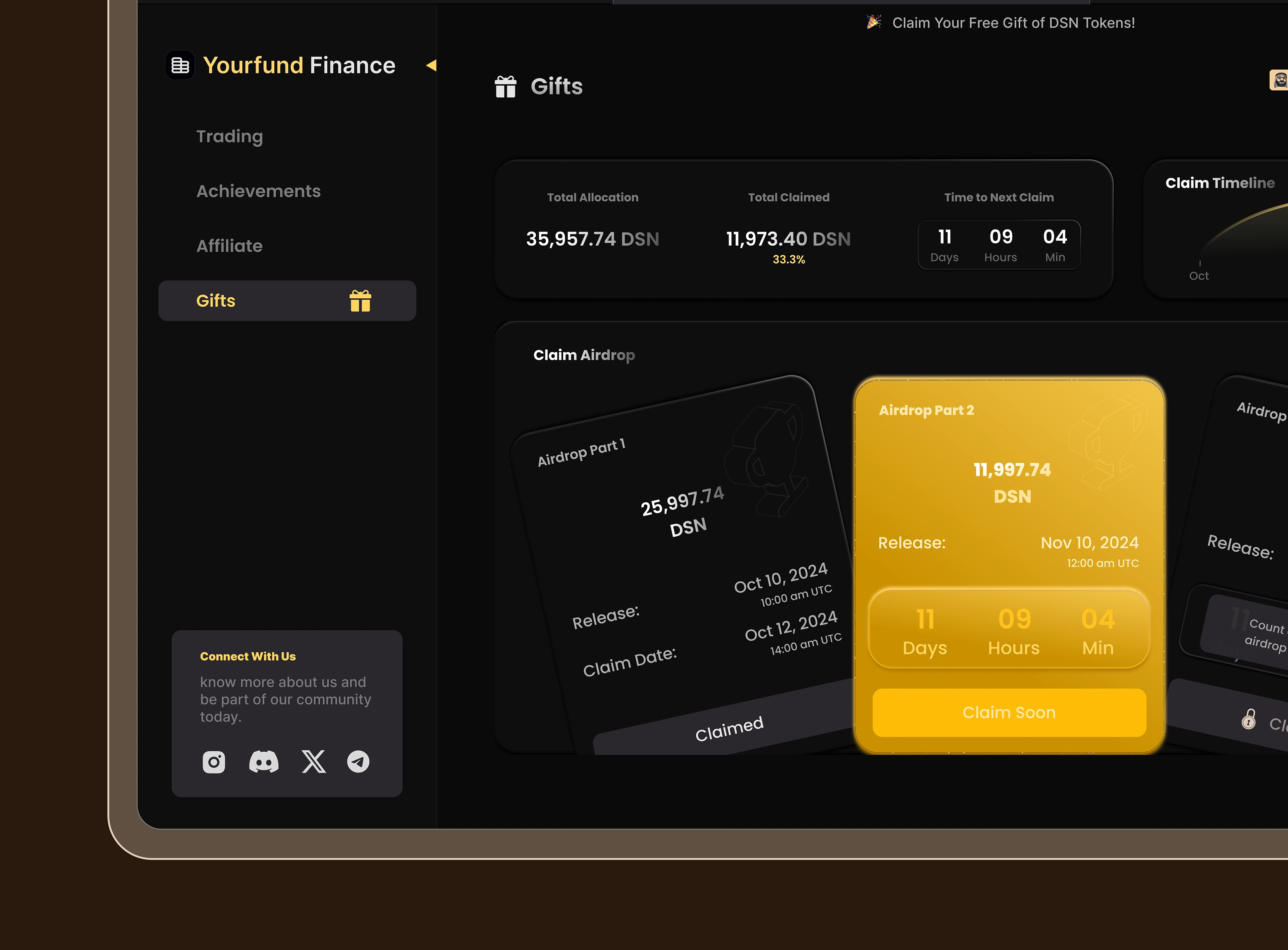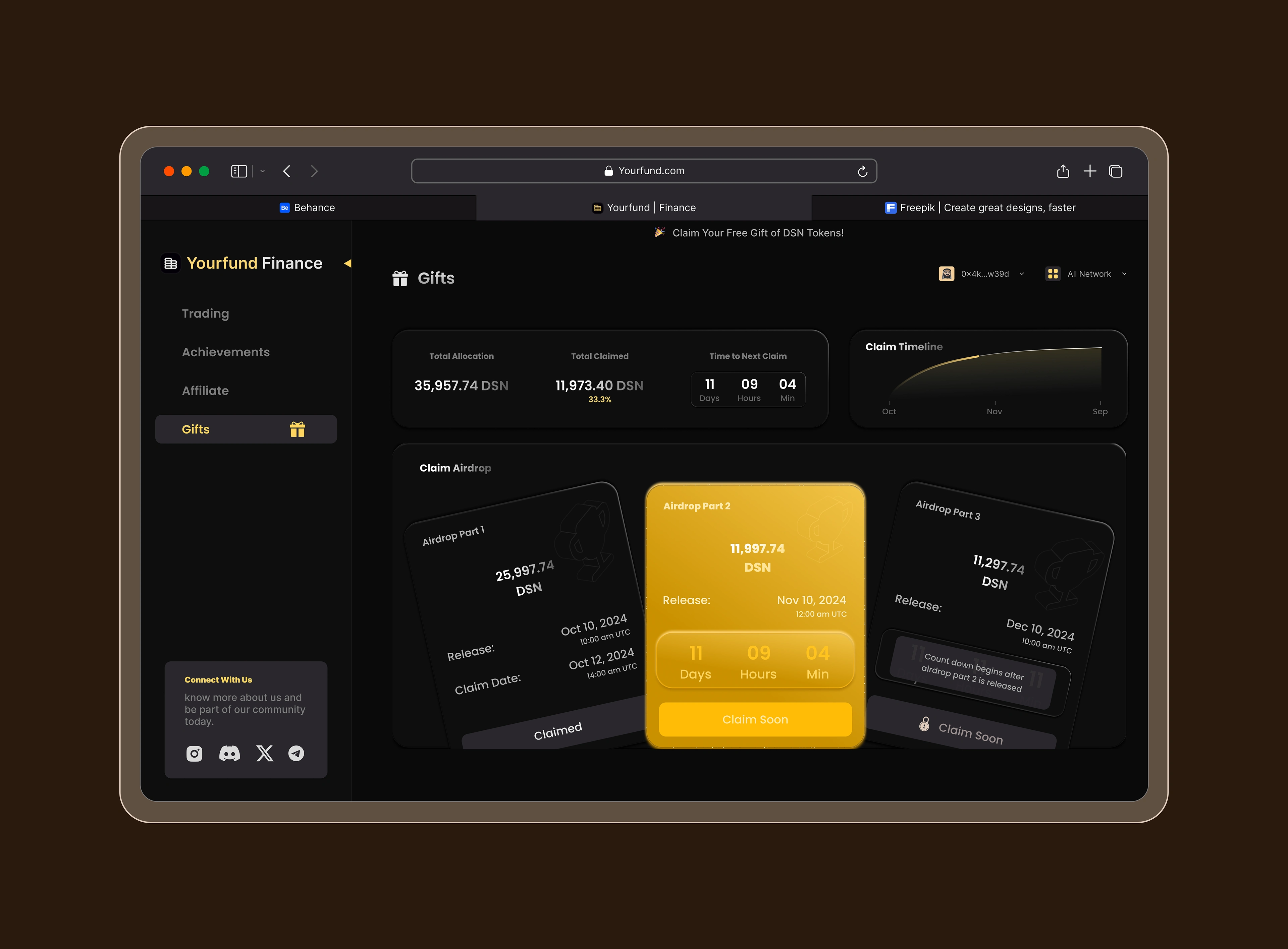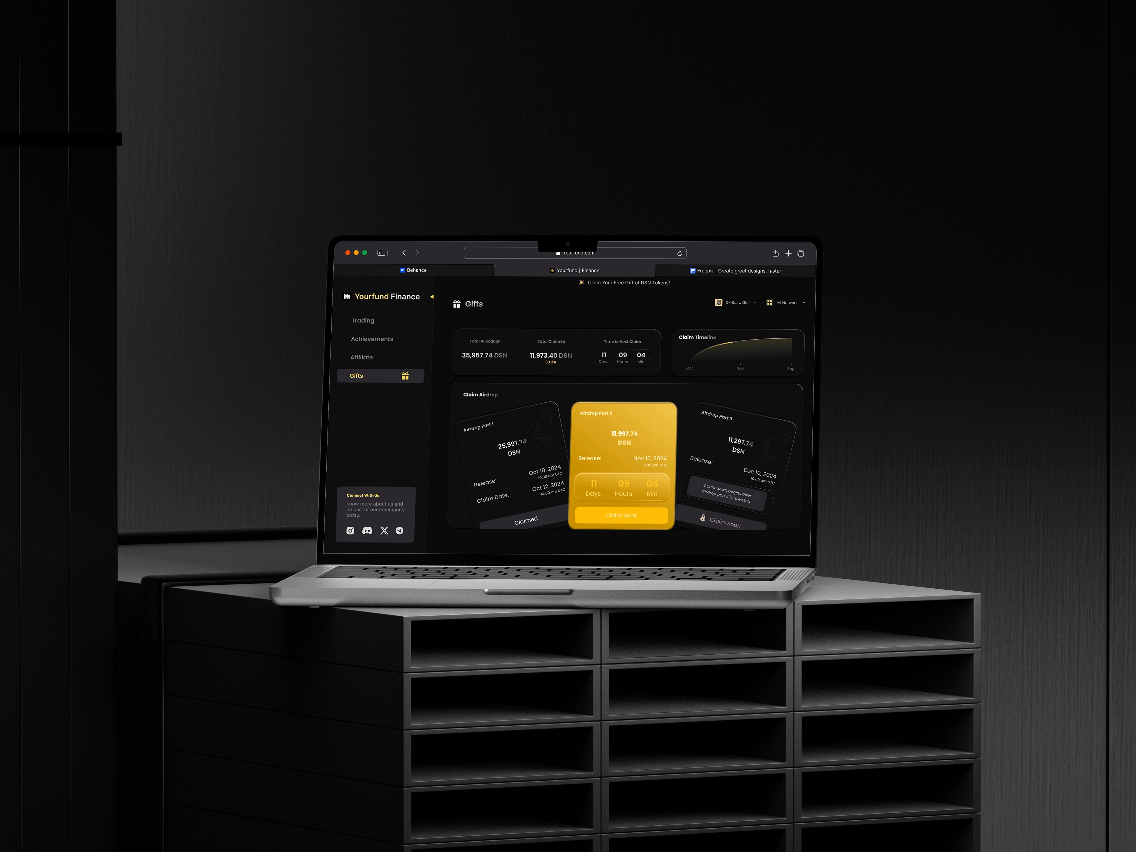 I redesigned a Web3 trading platform that features the DSN (Decentralized Storage Network) token gift screen.