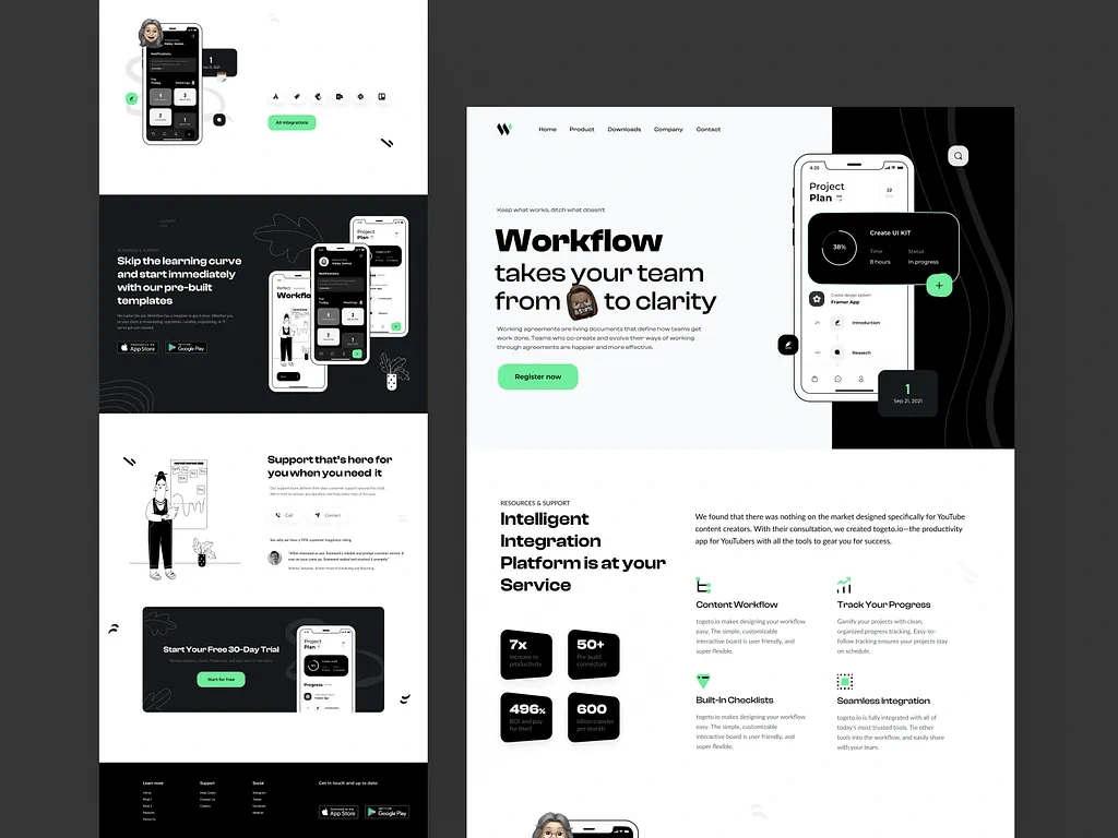 This design concept was a hell of a satisfactory challenge for us and the client alike. It was fun employing the use of emojis and custom illustrations for this page, making this page fun. The client was building a workflow platform for YouTube and content creators alike, and this presented a problem of making the site catchy without making it too much, and this brought the in between.