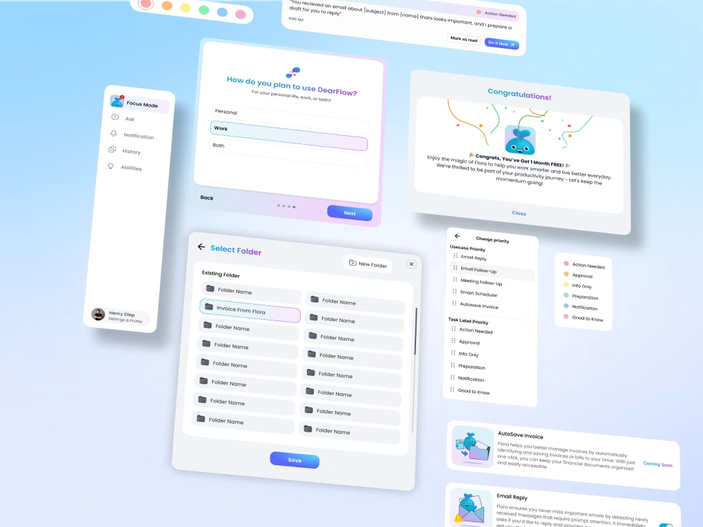 Developed brand identity and digital experience for AI assistant, Dearflow.