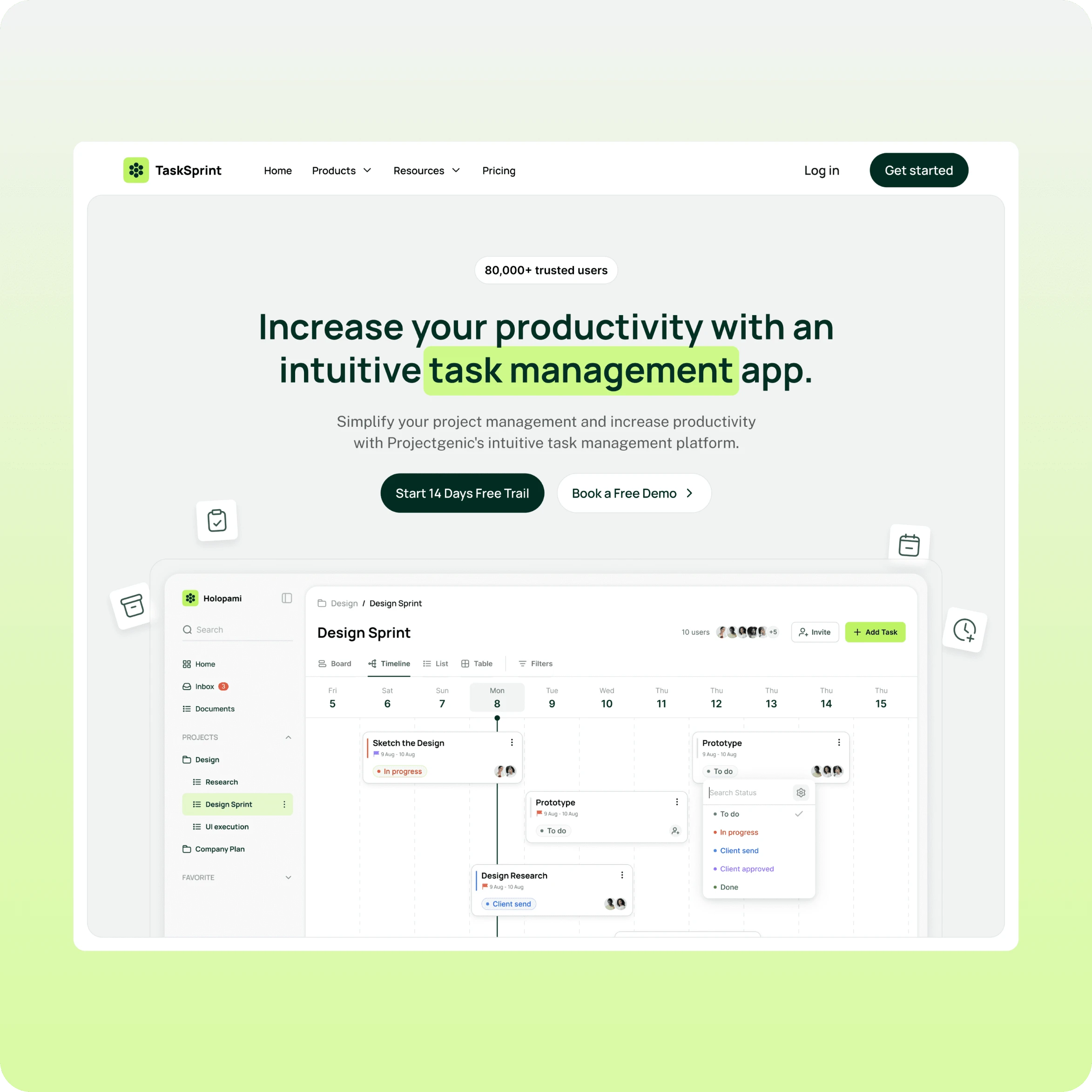Task Sprint needed a fresh and intuitive web presence to showcase their comprehensive task management app. The existing website lacked clarity and engagement, failing to convert visitors effectively.