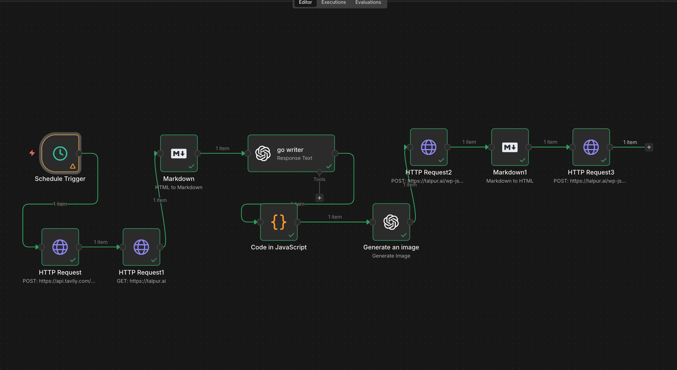A blog needs to pop. The workflow autonomously generates a custom, futuristic featured image using DALL-E 3, downloads the binary file, and uploads it to the WordPress Media Library.
