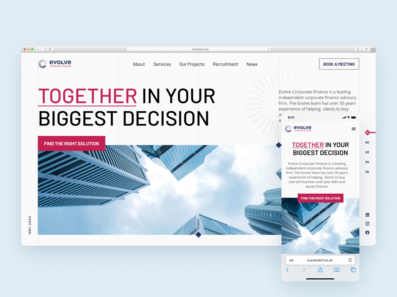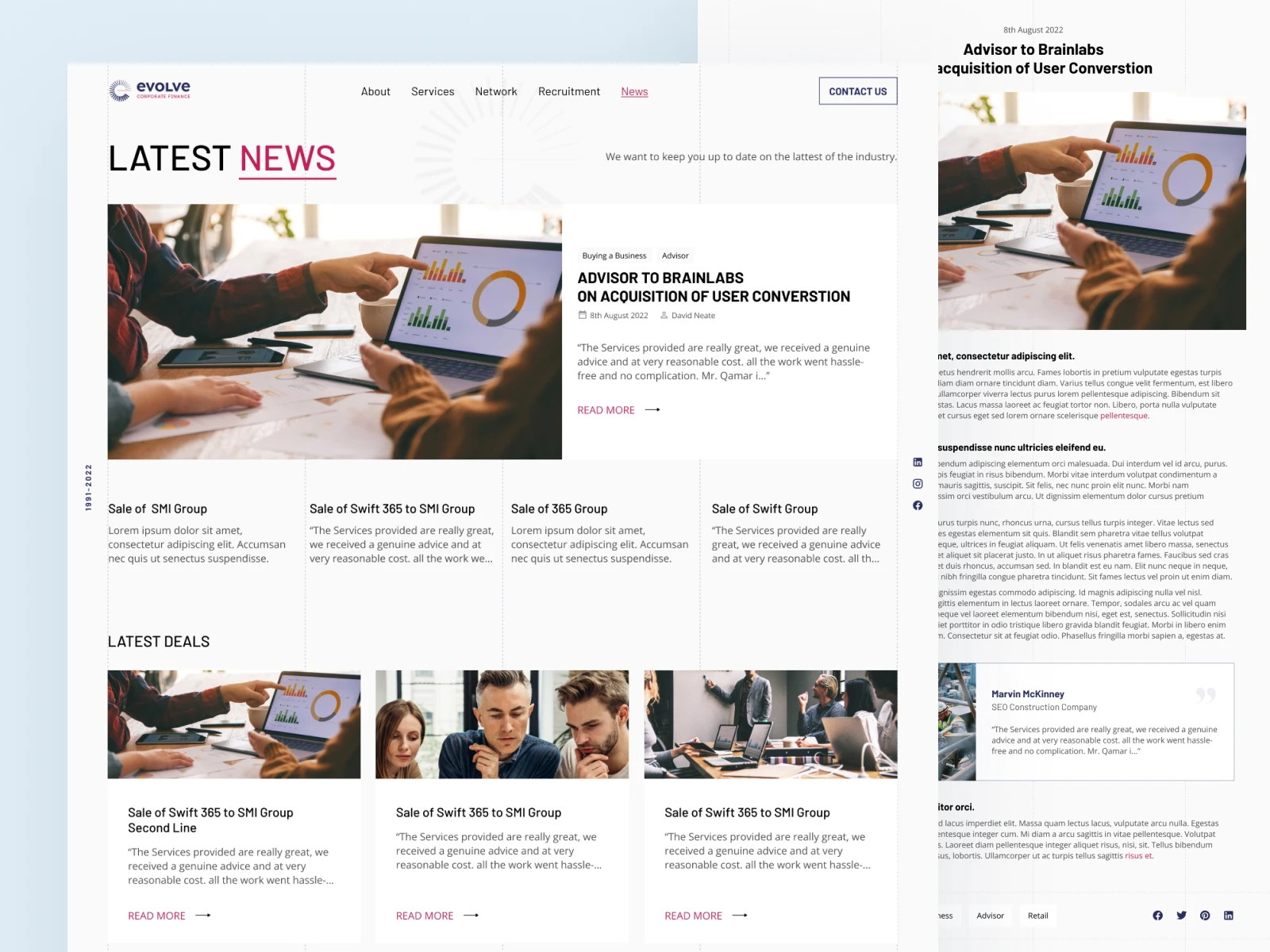 The result was a clean, confident website that communicates Evolve’s role as a reliable bridge between buyers and sellers in the business world.