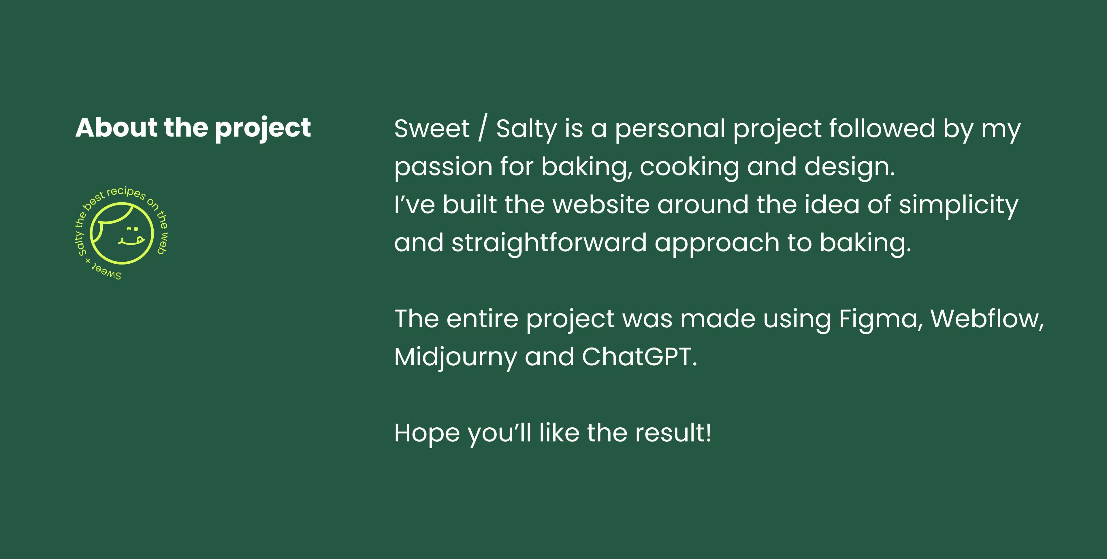 I've created Sweet & Salty for those who want an easy, straightforward recipes for everything delicious. I've used Figma to design and Webflow to develop.
