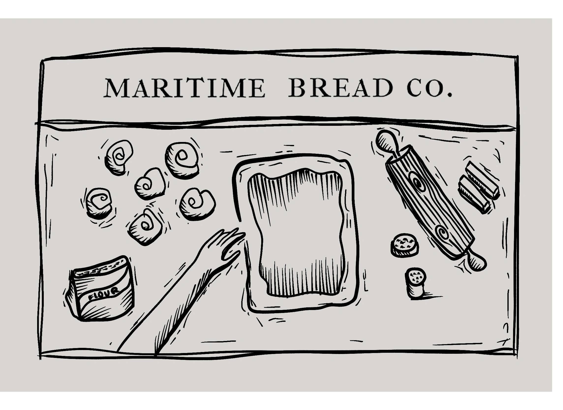 Maritime Bread Co. was a brand refresh with additional illustrations and packaging designs. An old linocut of Blackbeard inspired Maritime's original logo. To keep everything within the pre-existing brand style, I carved all the illustrations on my own lino blocks, then I inked and digitized them.