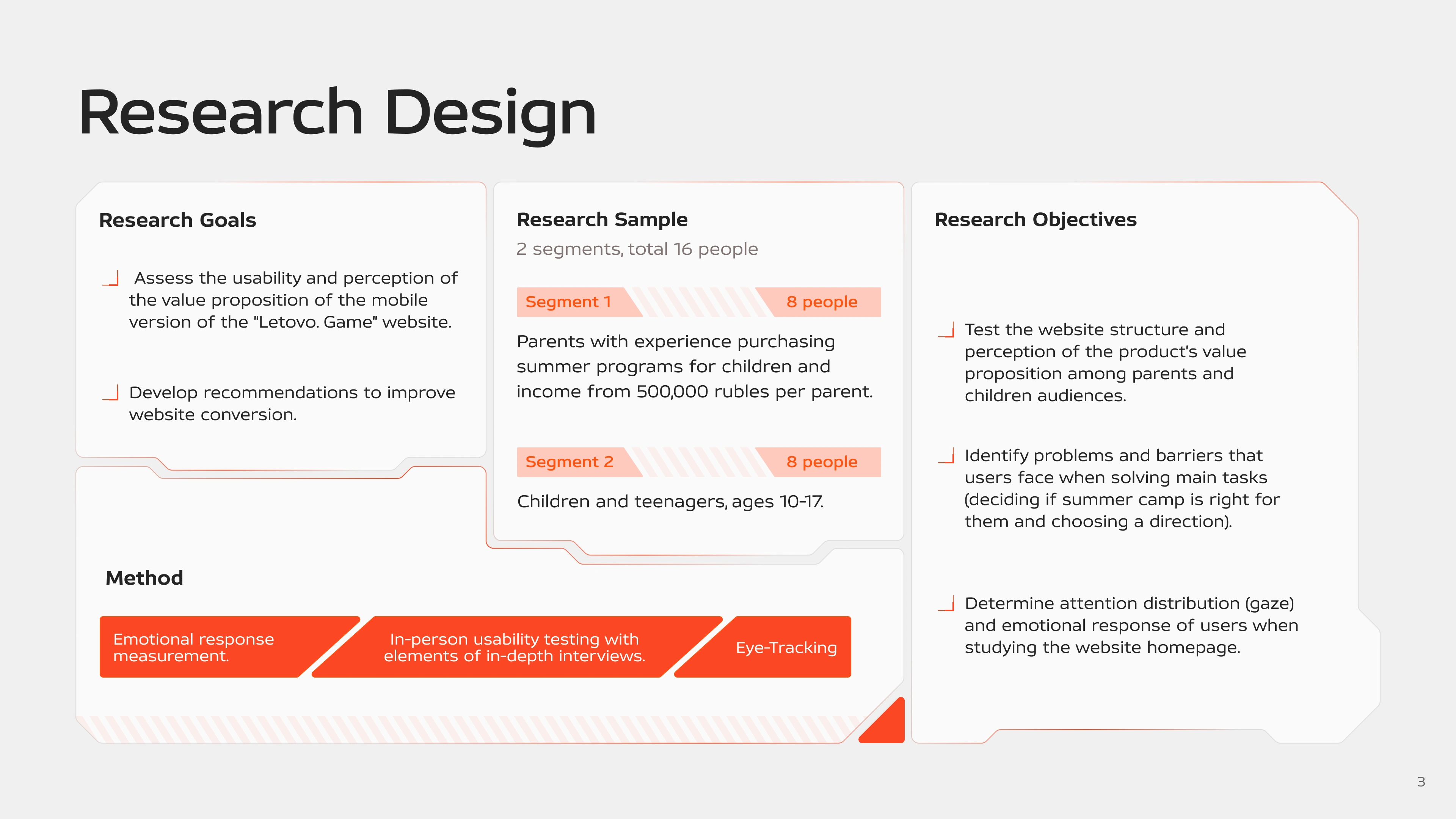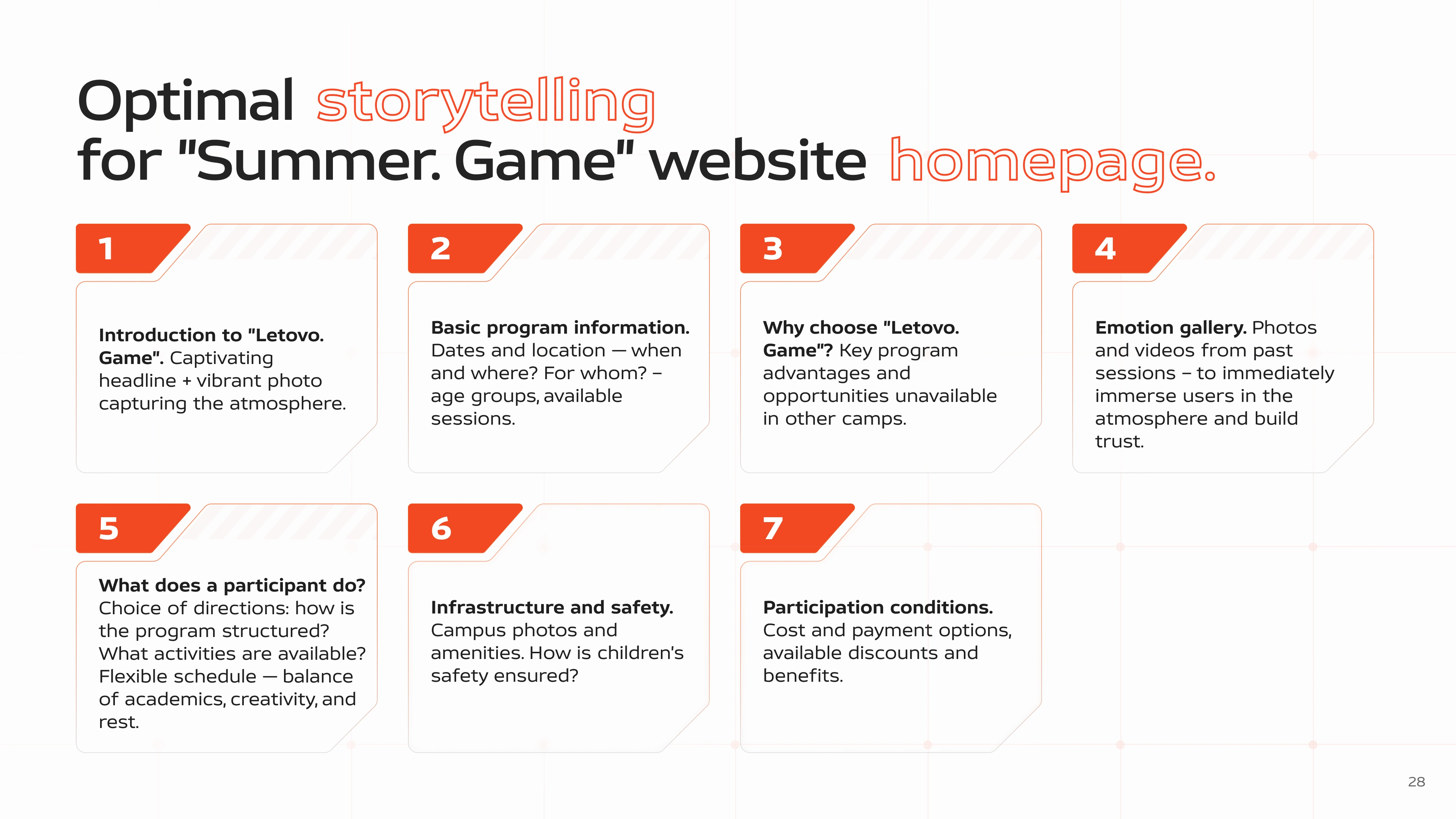 Visual System: developed a report design aligned with Summer.Game website style (red-orange palette, geometric frames, bold typography)