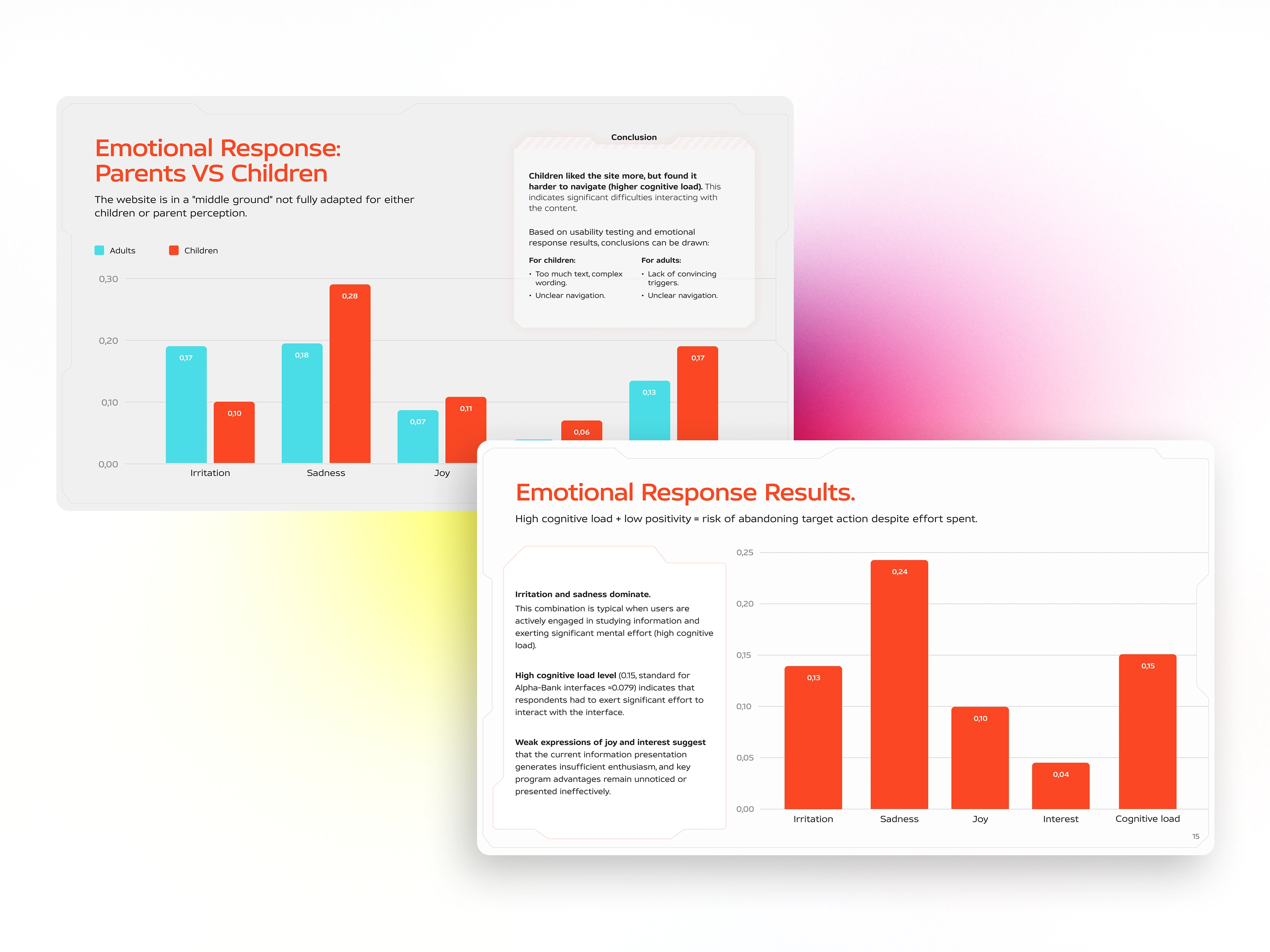 UX Research Report for an Educational Program Website. Visualised emotional response data and user insights through a design system aligned with the brand.