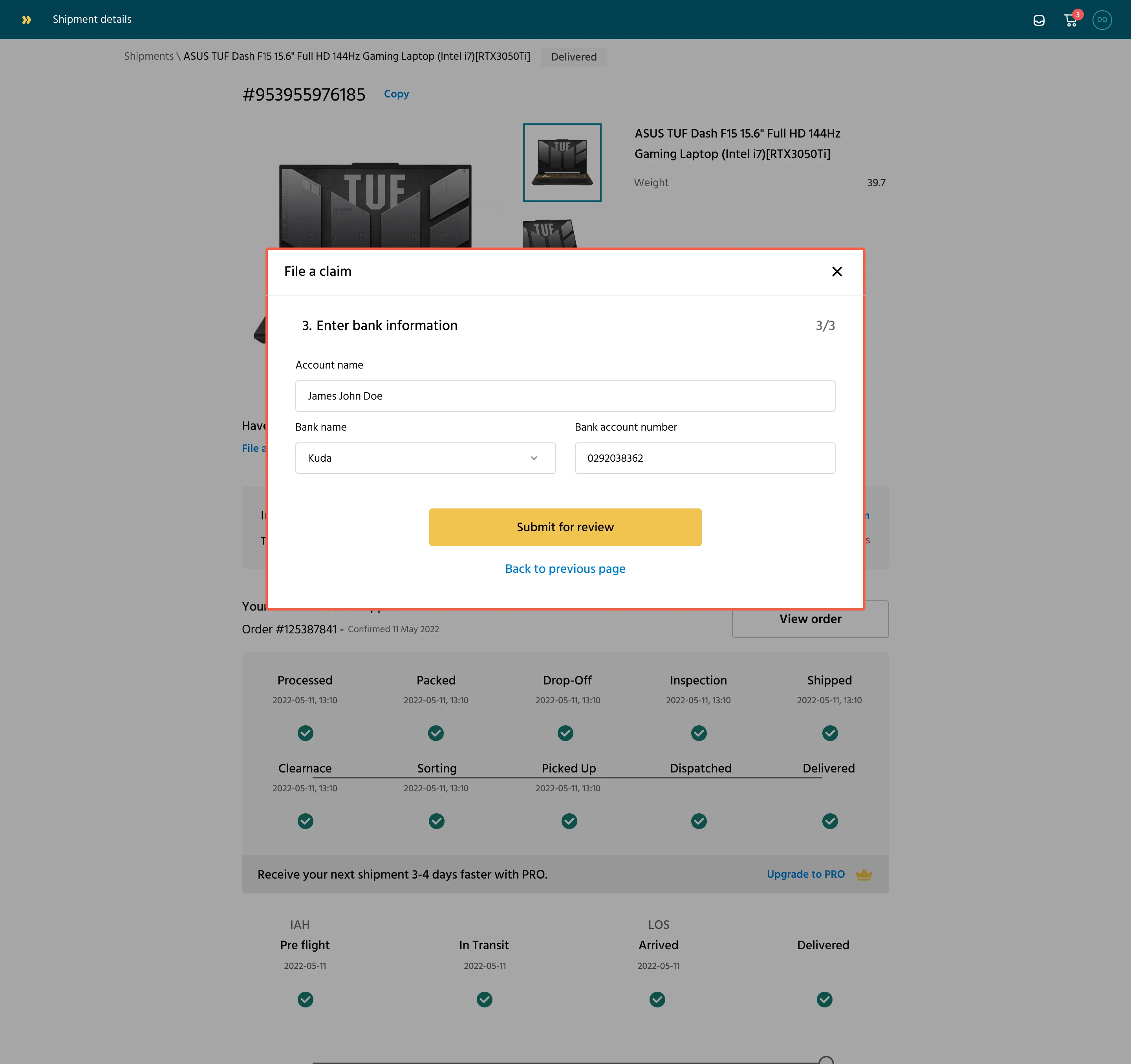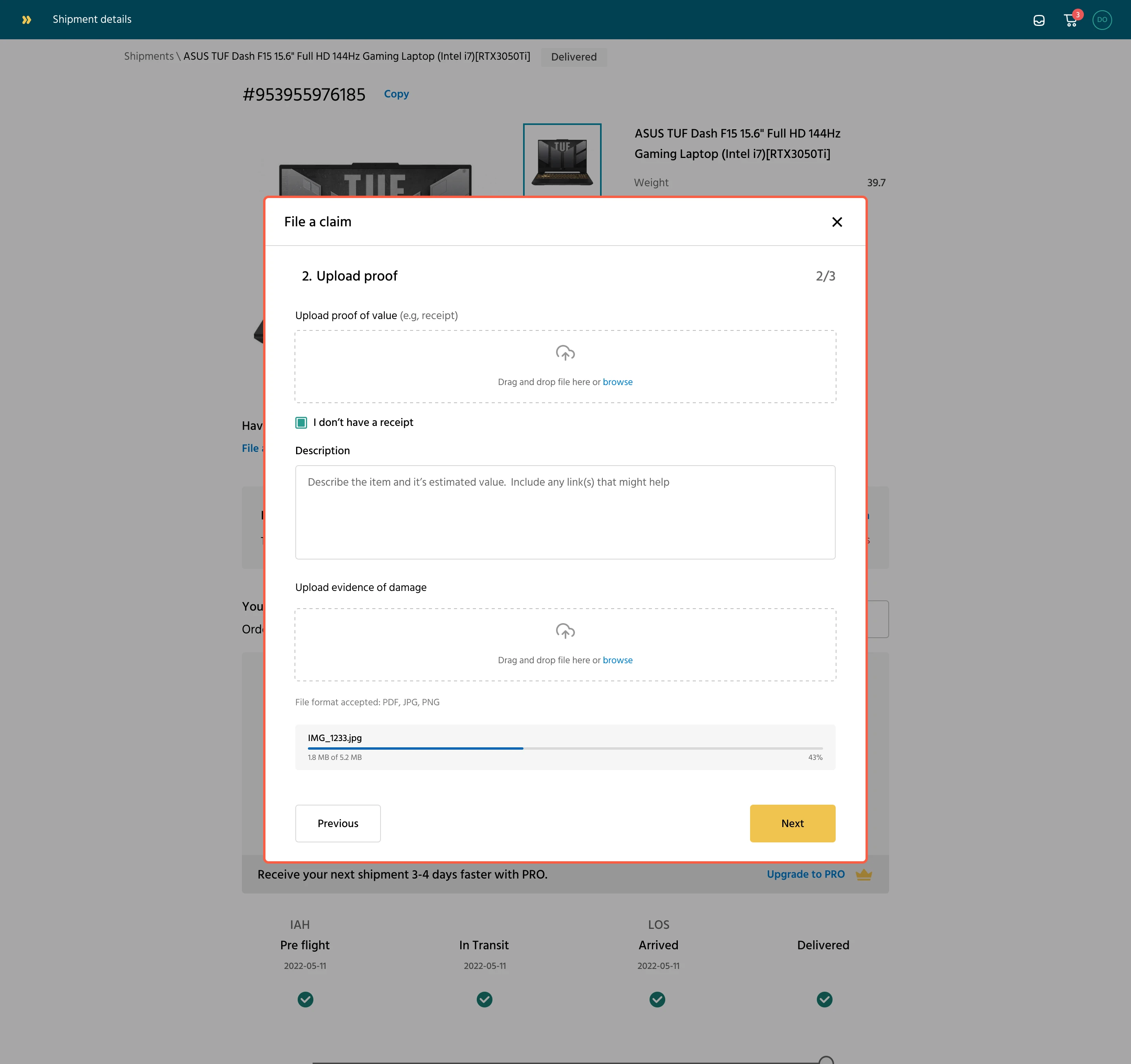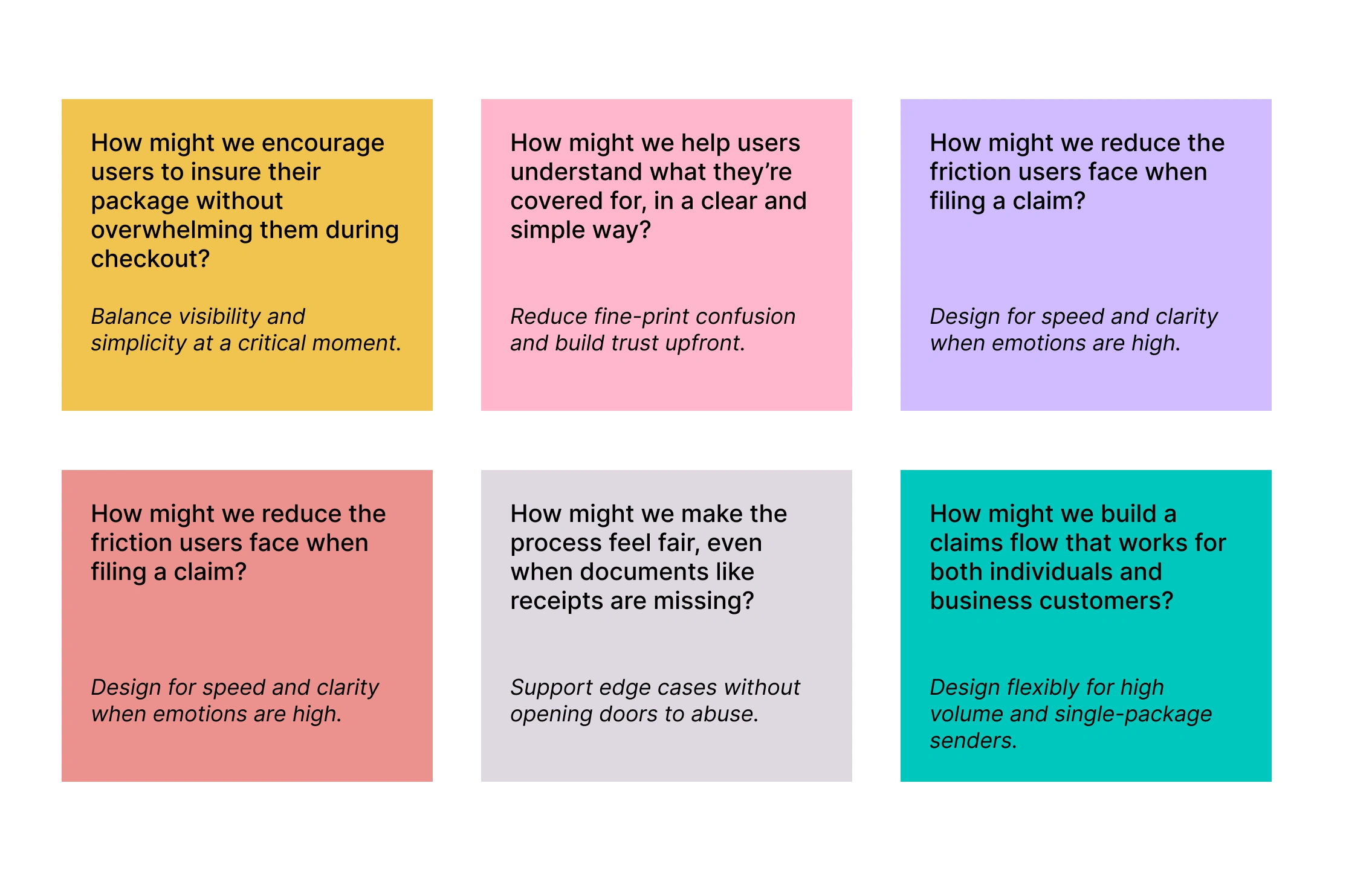 Stage Pain Point Why It Matters Checkout Insurance option feels like an extra fee or is easily missed Users may skip coverage due to poor visibility or unclear value Confusion around what’s covered Users hesitate or abandon checkout if they don’t understand what insurance does Post-Delivery (Problem Detected) No clear starting point for filing a claim Users feel lost or frustrated when something goes wrong Filing a Claim Mandatory receipt requirement excludes gifted/personal items Honest users can’t complete the form and feel blocked Unclear which category (e.g., stolen, lost, delayed) to pick Leads to incorrect claims or rejections Users unsure what happens after submission Creates anxiety — “Did they receive it?” “Will I get refunded?” Claim Review Process Manual support escalation for edge cases Increases workload for support teams and slows resolution for all users Reimbursement Bank account detail entry feels risky or lacks confirmation Users worry about input errors or financial security
