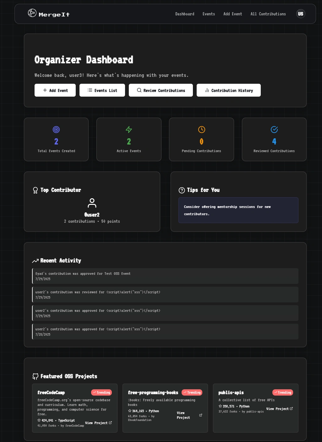MergeIt is a platform designed to bring developers together through high-impact, community-driven open source contribution events. Organizers can easily create and manage events, track contributions, and review pull requests, while participants gain recognition, experience, and connections in the open source ecosystem.