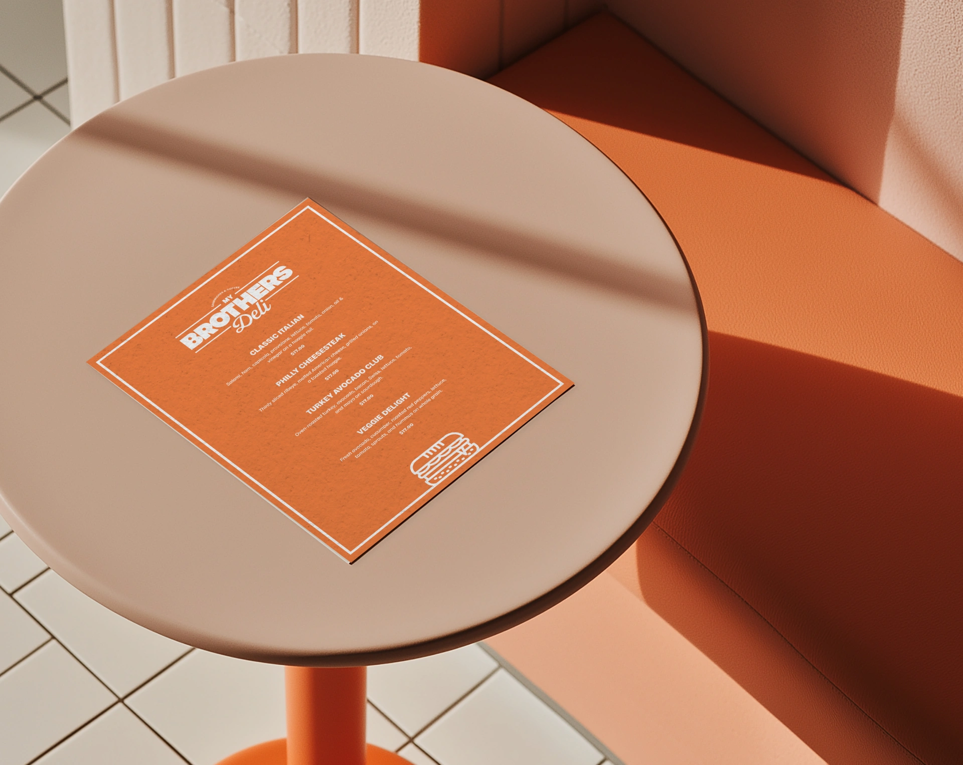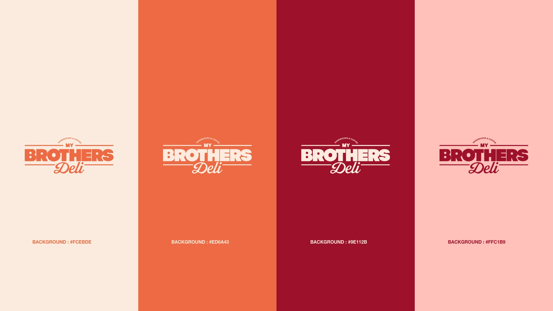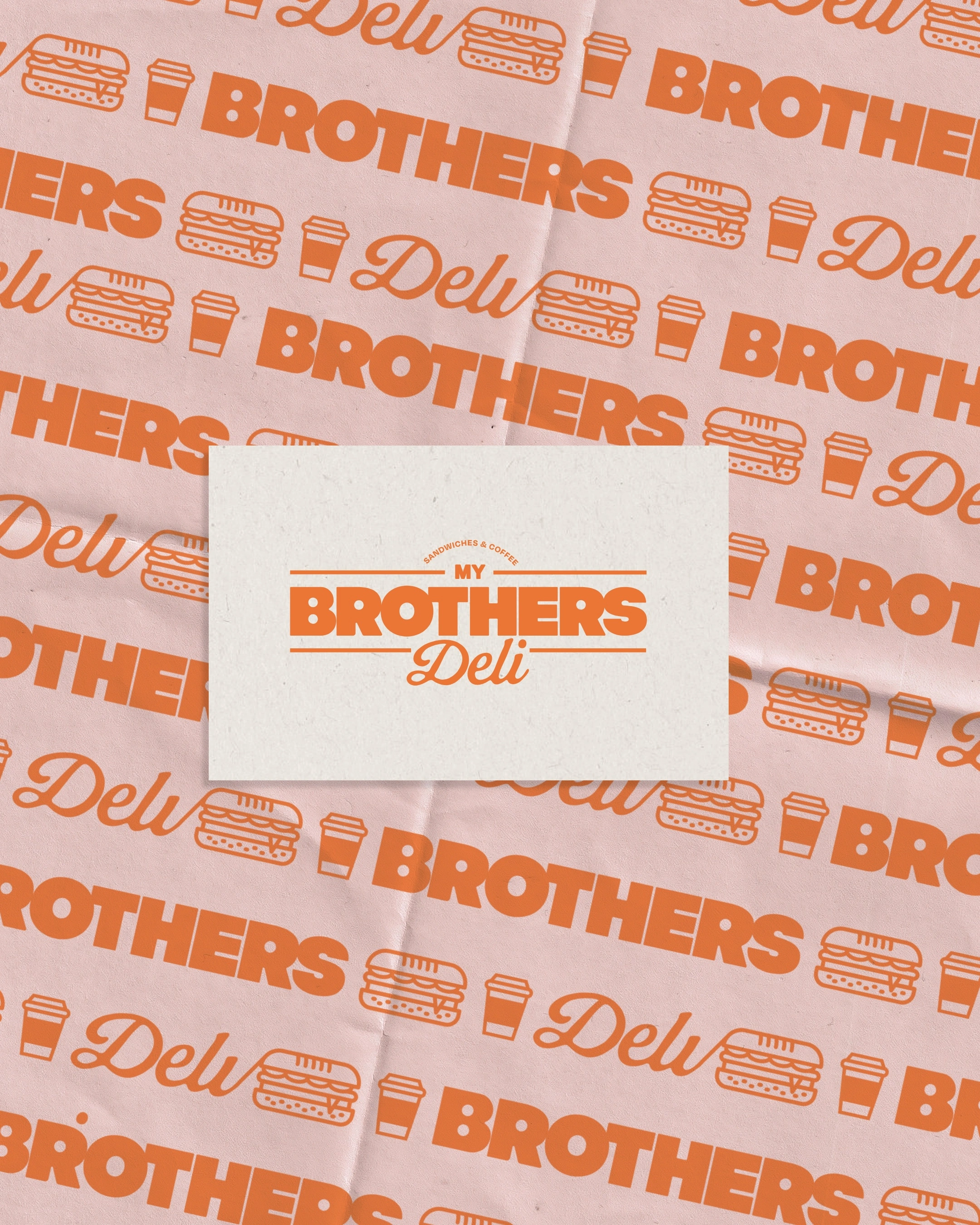 My Brothers Deli blending warm tones, bold typography and high end mockups. Logo & brand identity Packaging & menus Storefront & signage mock ups