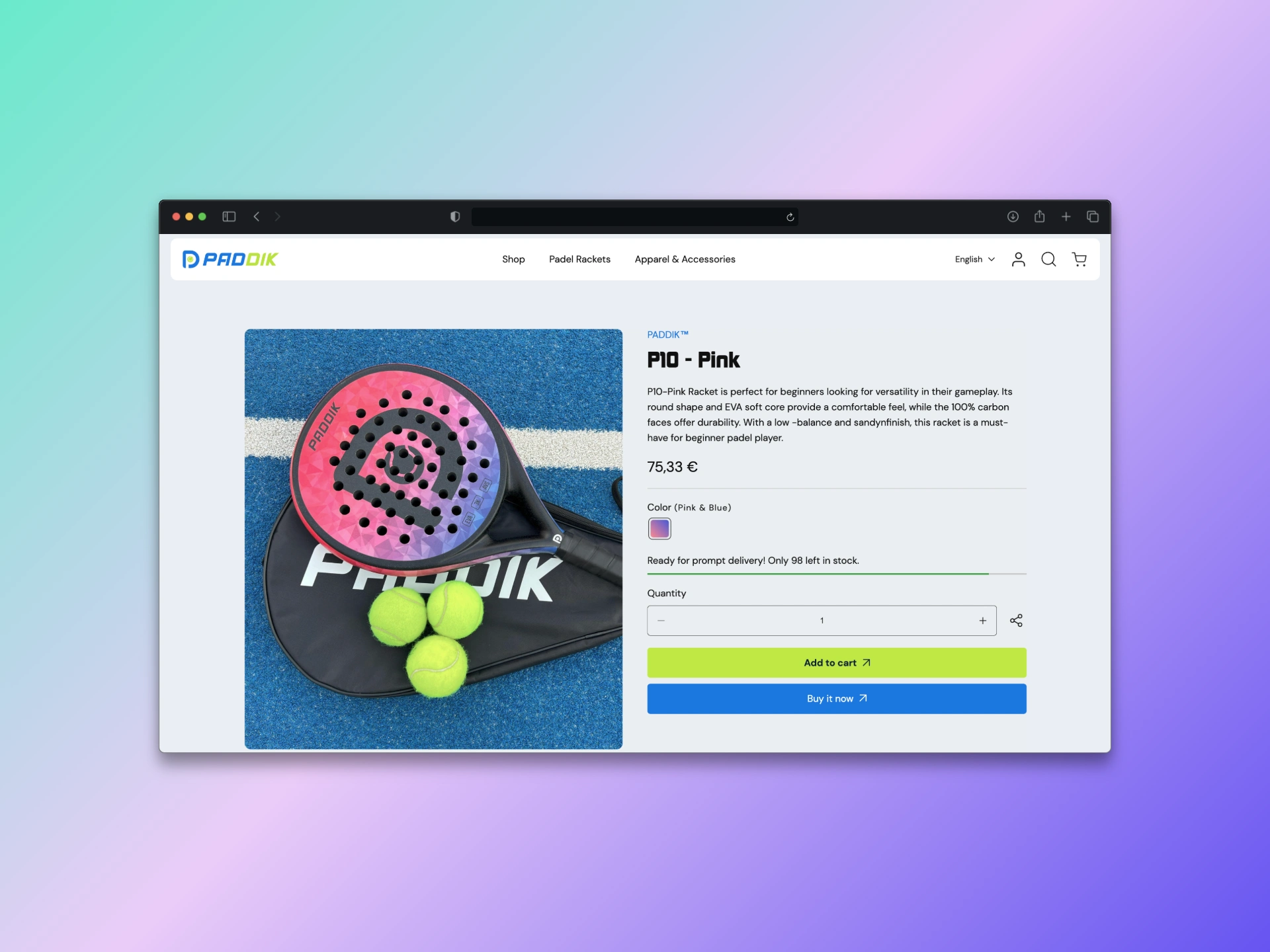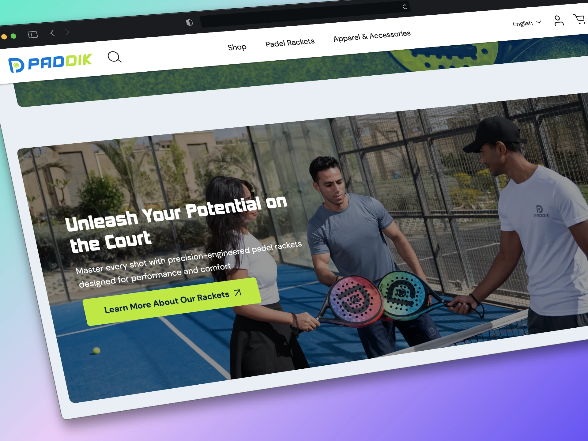 Complete web design & dev for Paddik, a premium padel brand. Mobile-first, modern UI, and optimized for regional markets.