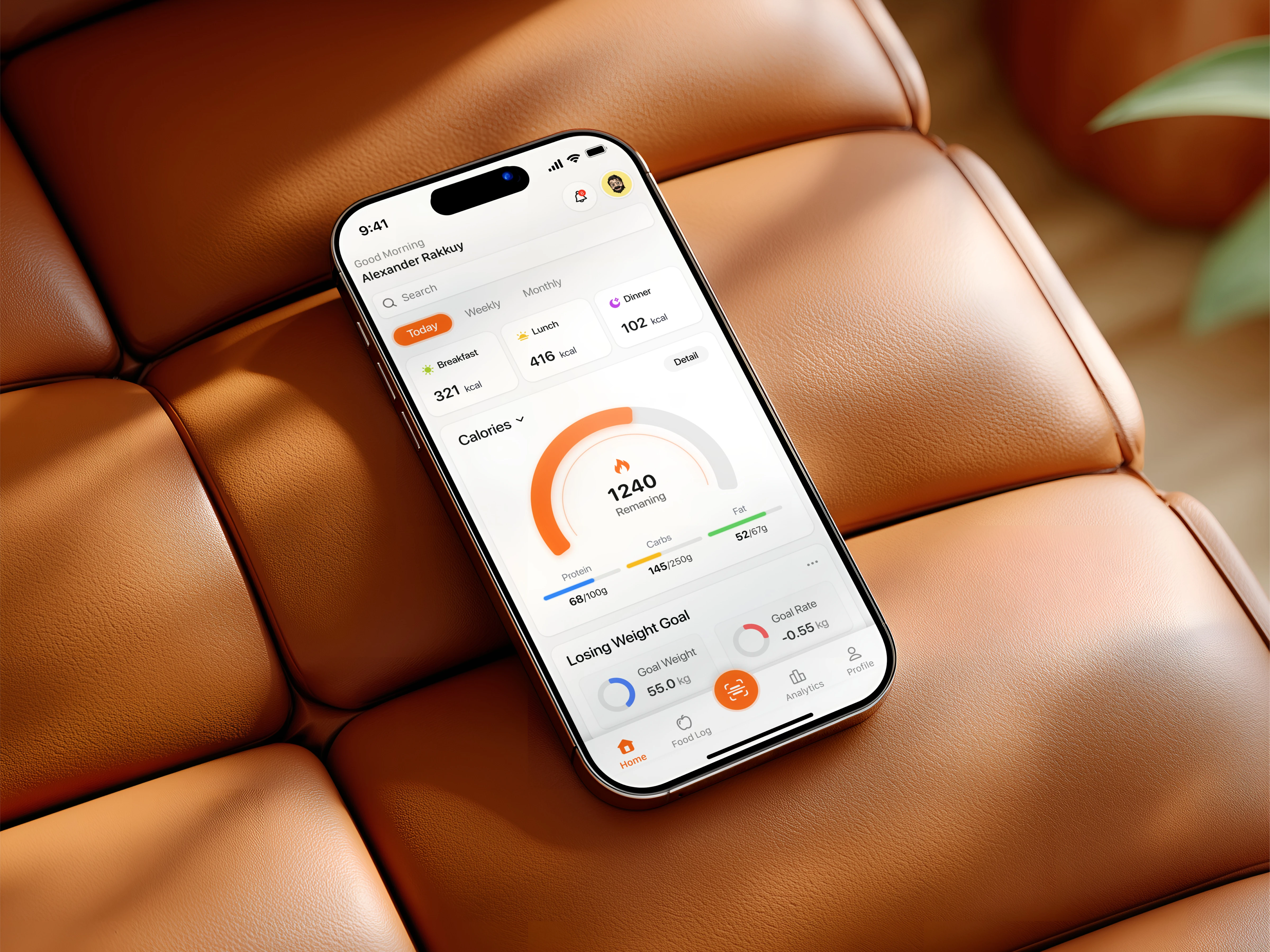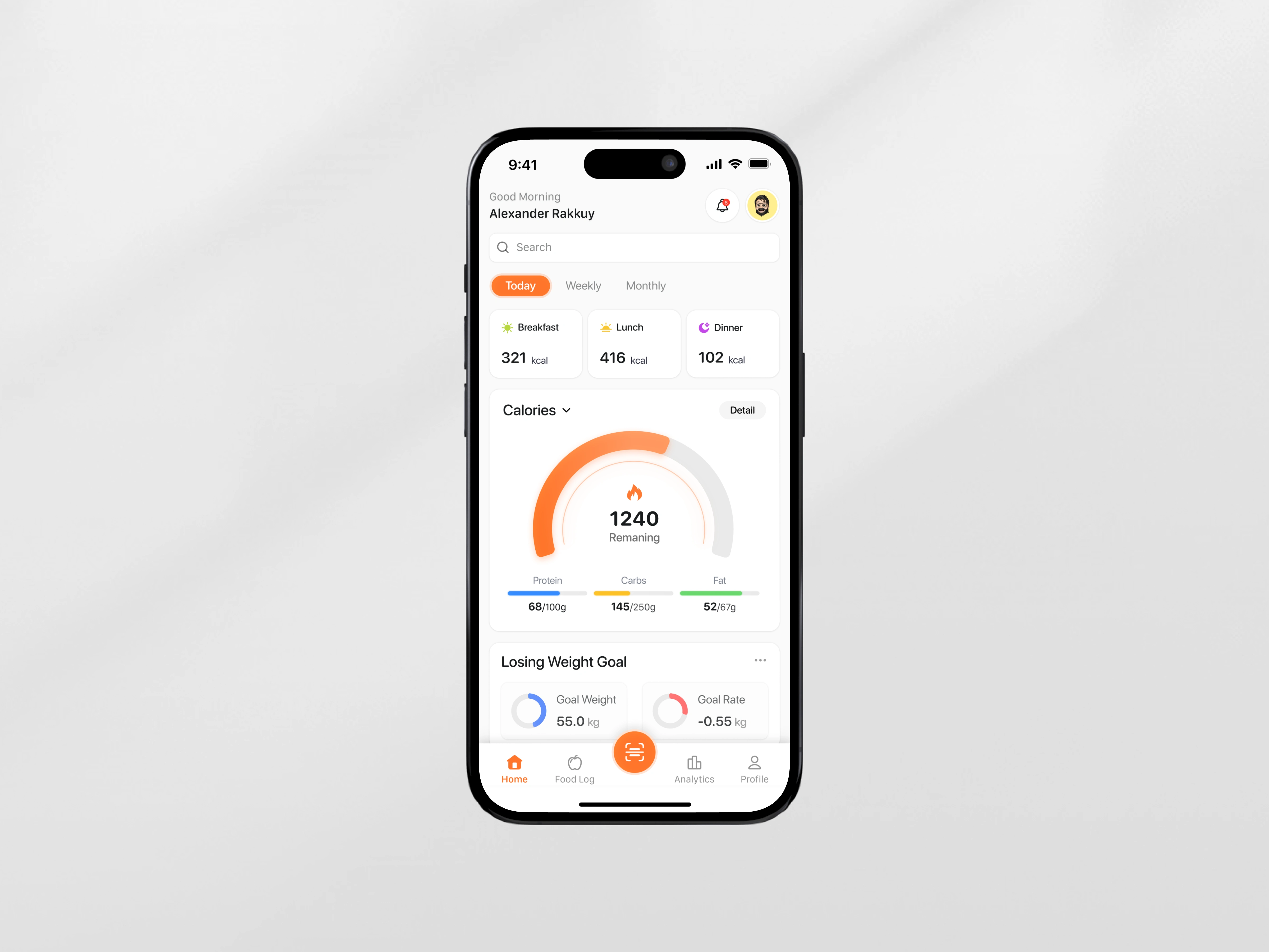 We designed a mobile-first experience that prioritizes visual clarity and quick actions. Calories, macros, and meal history are presented using cards, progress rings, and timelines that are easy to scan and interact with using simple taps.