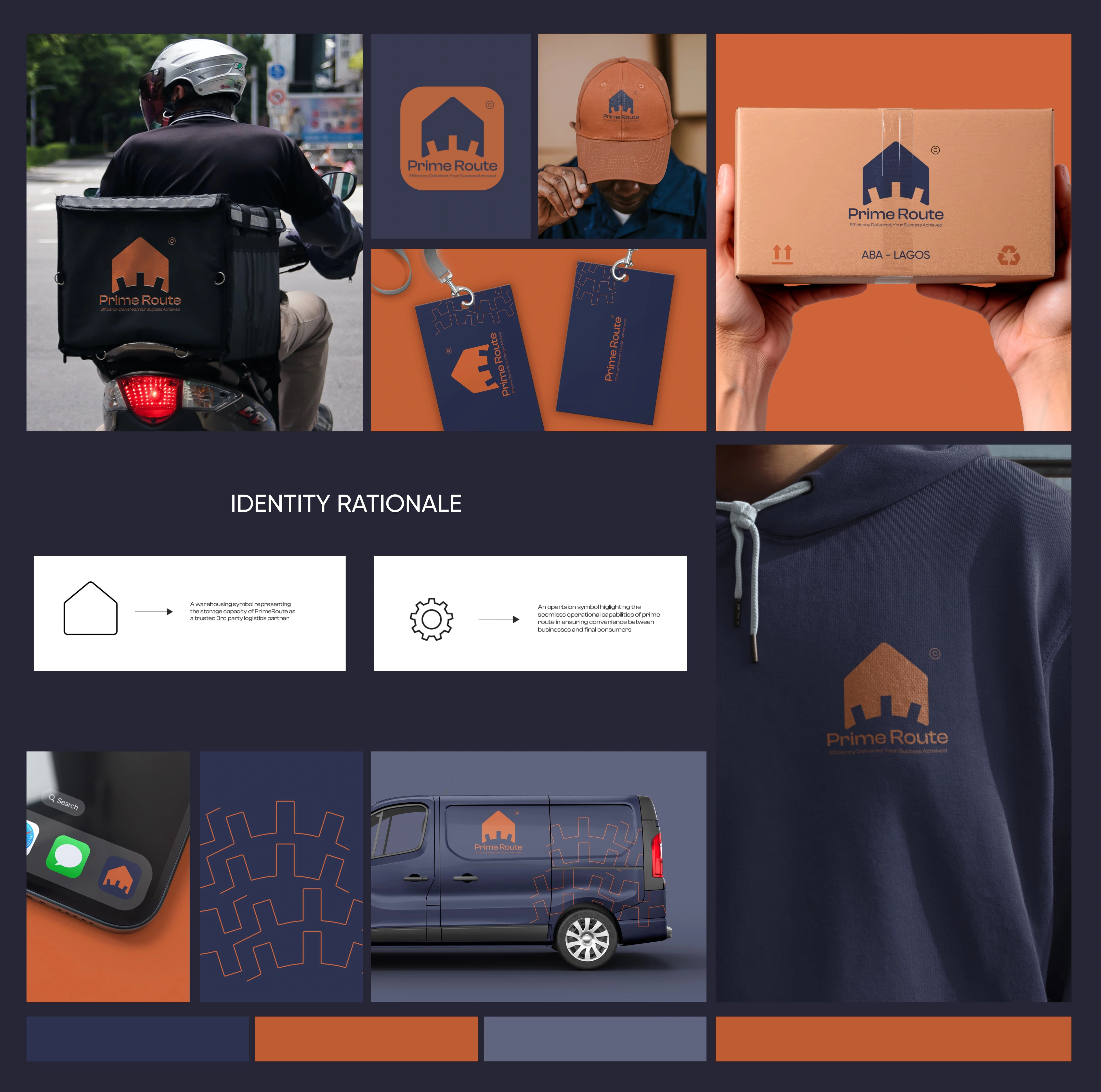These were woven into a unified, memorable logo that communicates both structure and movement—key traits in logistics. The identity was applied across mockups, signage, delivery vans, staff gear, and digital assets for consistency.